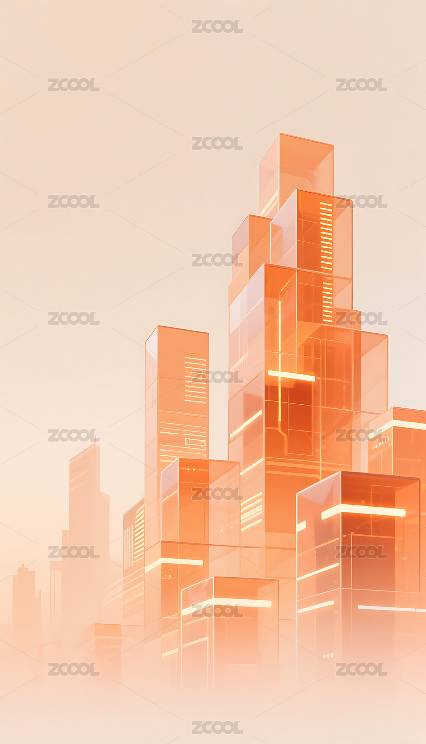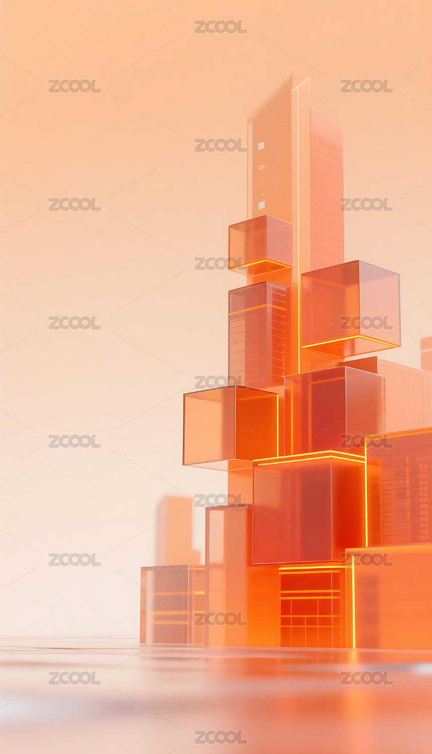 橙色科技几何方块玻璃质感城市建筑