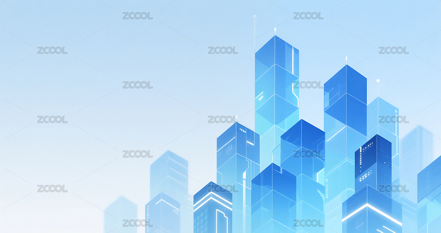 蓝色透明方块几何城市建筑背景