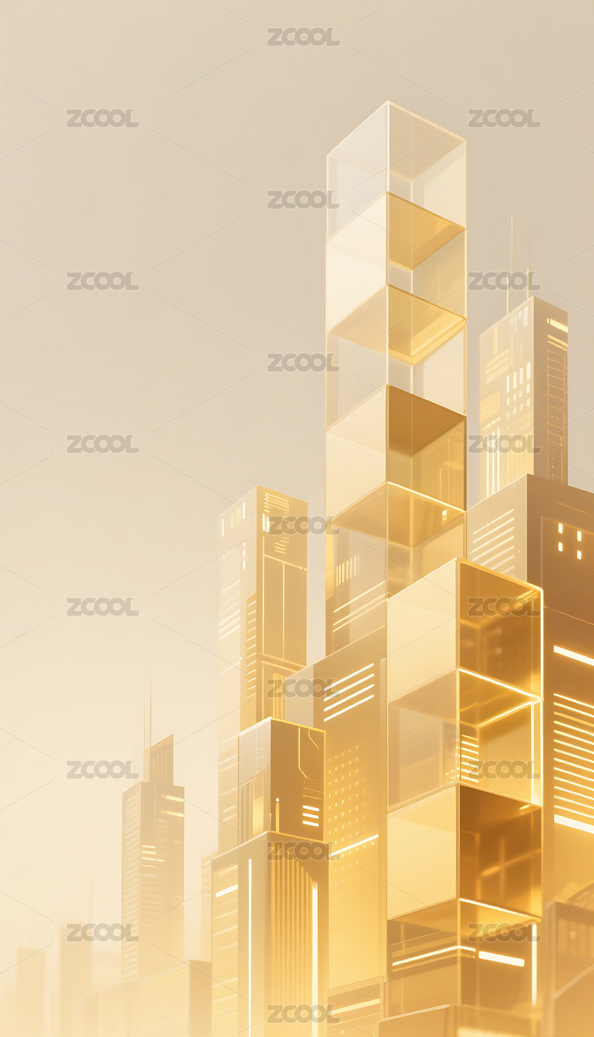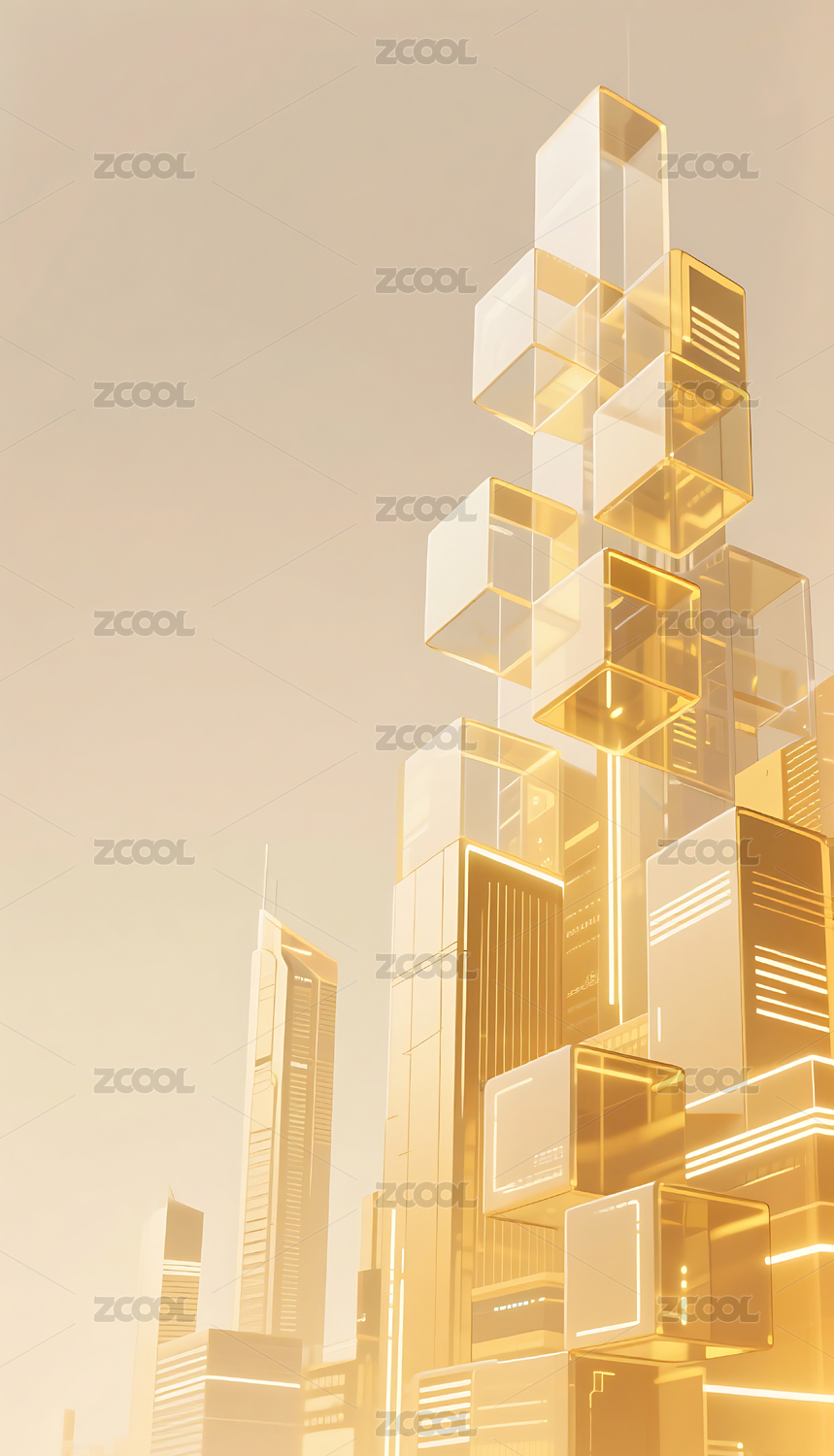 金色科技几何方块玻璃质感城市建筑