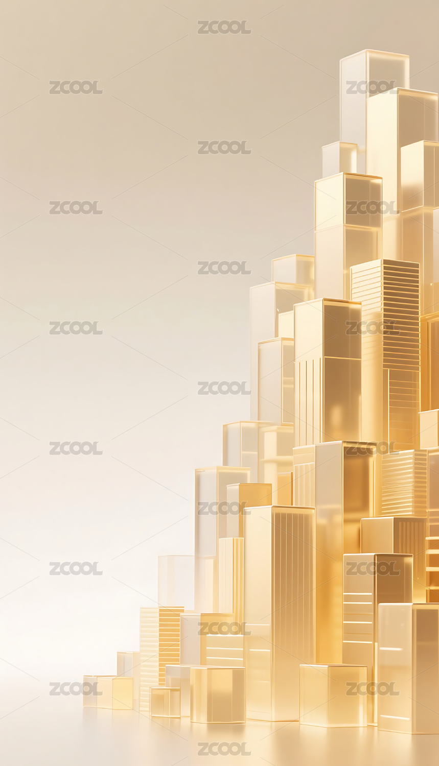 金色透明方块几何城市建筑背景