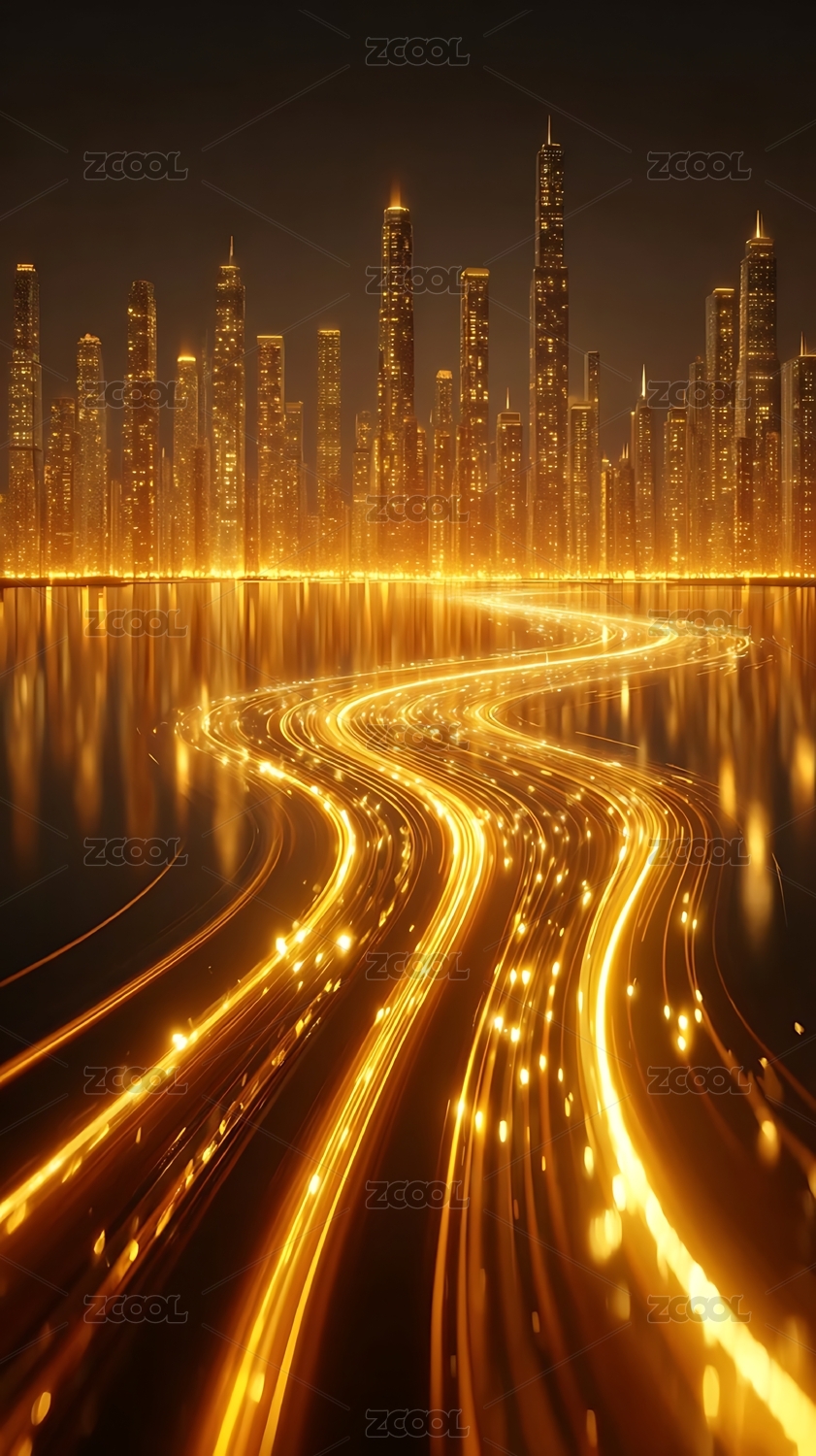 城市,夜景,金色,光轨,建筑,高楼,道路,光线,动感,繁华