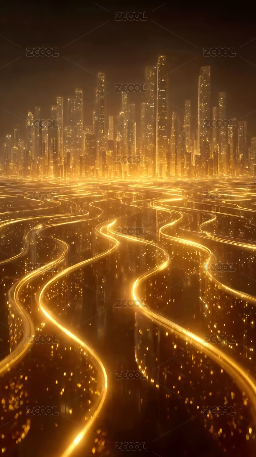 城市,夜景,金色,光轨,建筑,高楼,道路,光线,动感,繁华