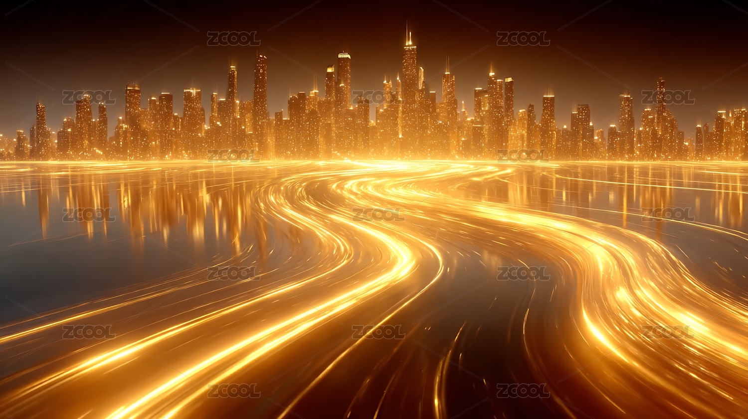 金色城市光轨夜景