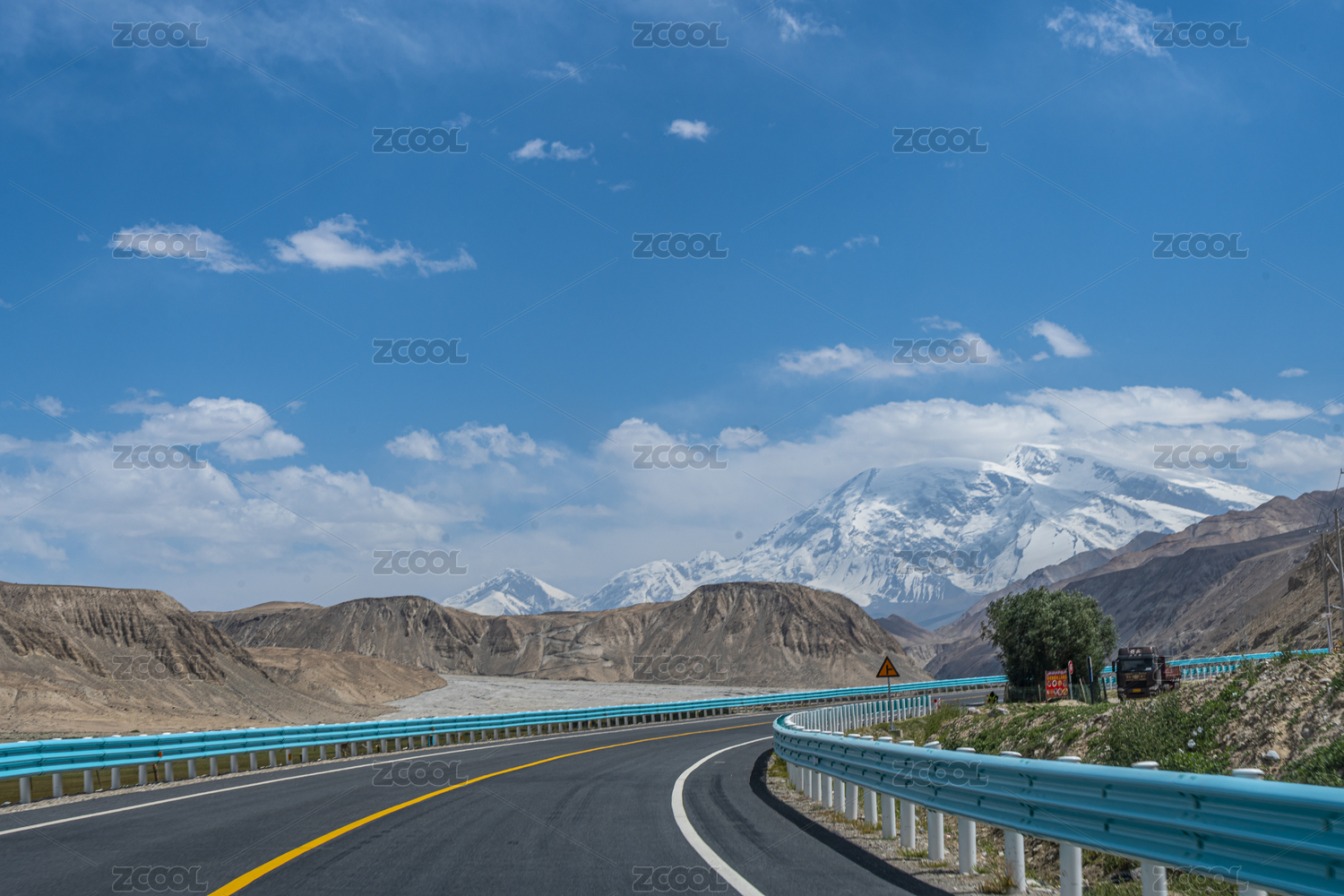 中国,新疆,中巴公路,公路,路面,弯道,道路,路标,线条,弯曲