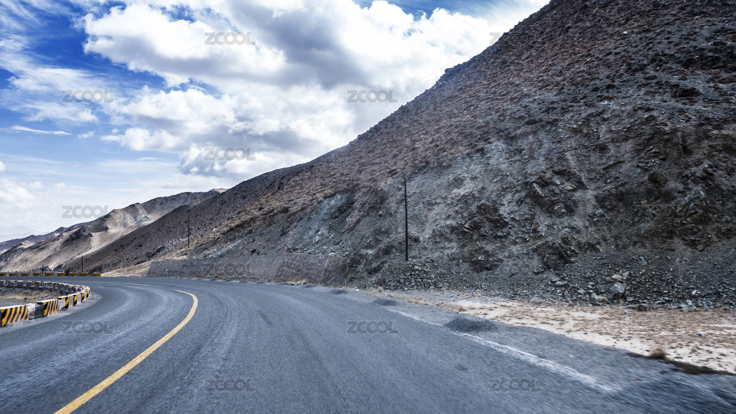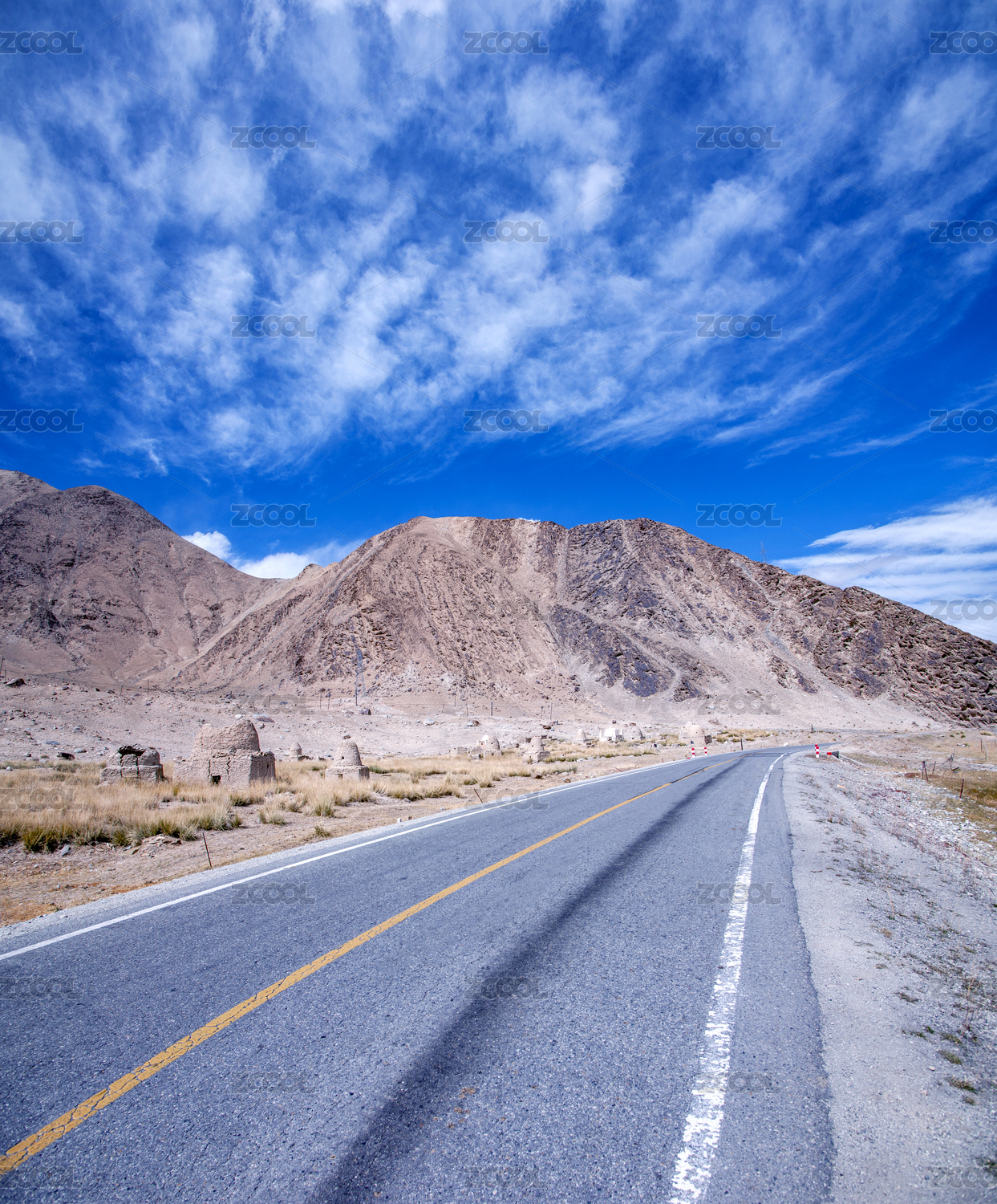 中国,新疆,中巴公路,公路,路面,弯道,道路,路标,线条,弯曲