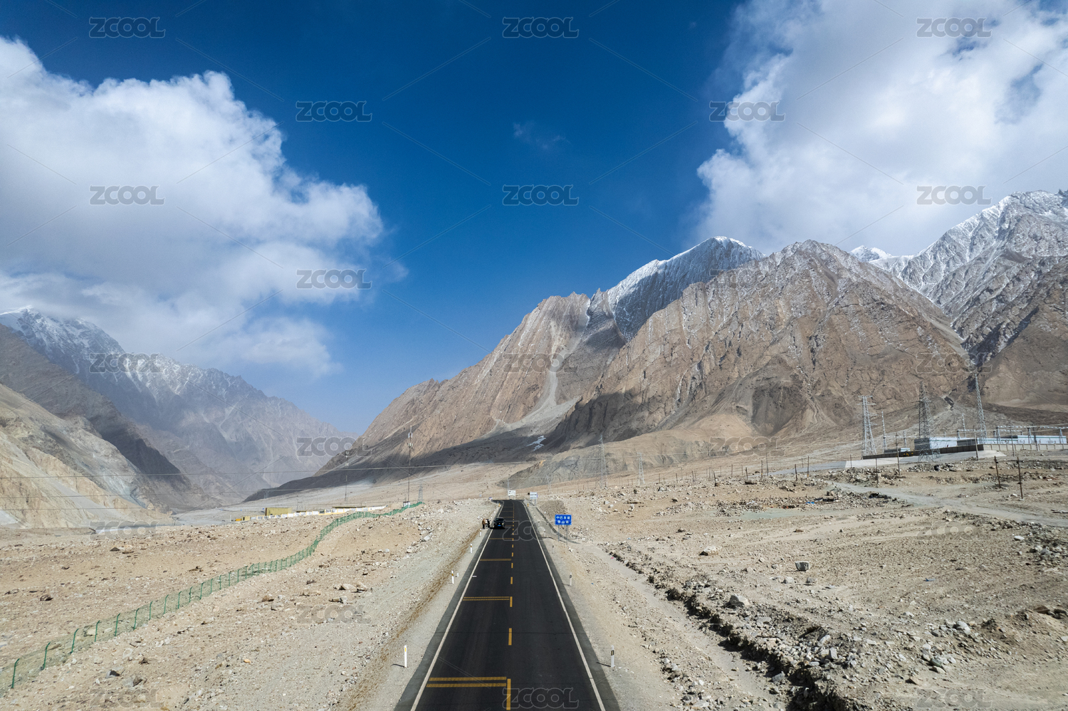 中国,新疆,中巴公路,公路,路面,弯道,道路,路标,线条,弯曲