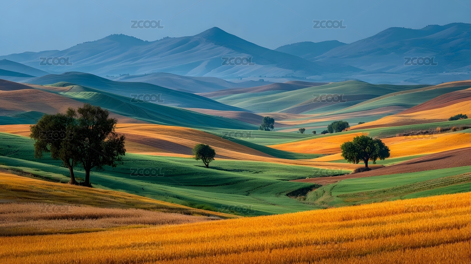 多彩丘陵田园风光