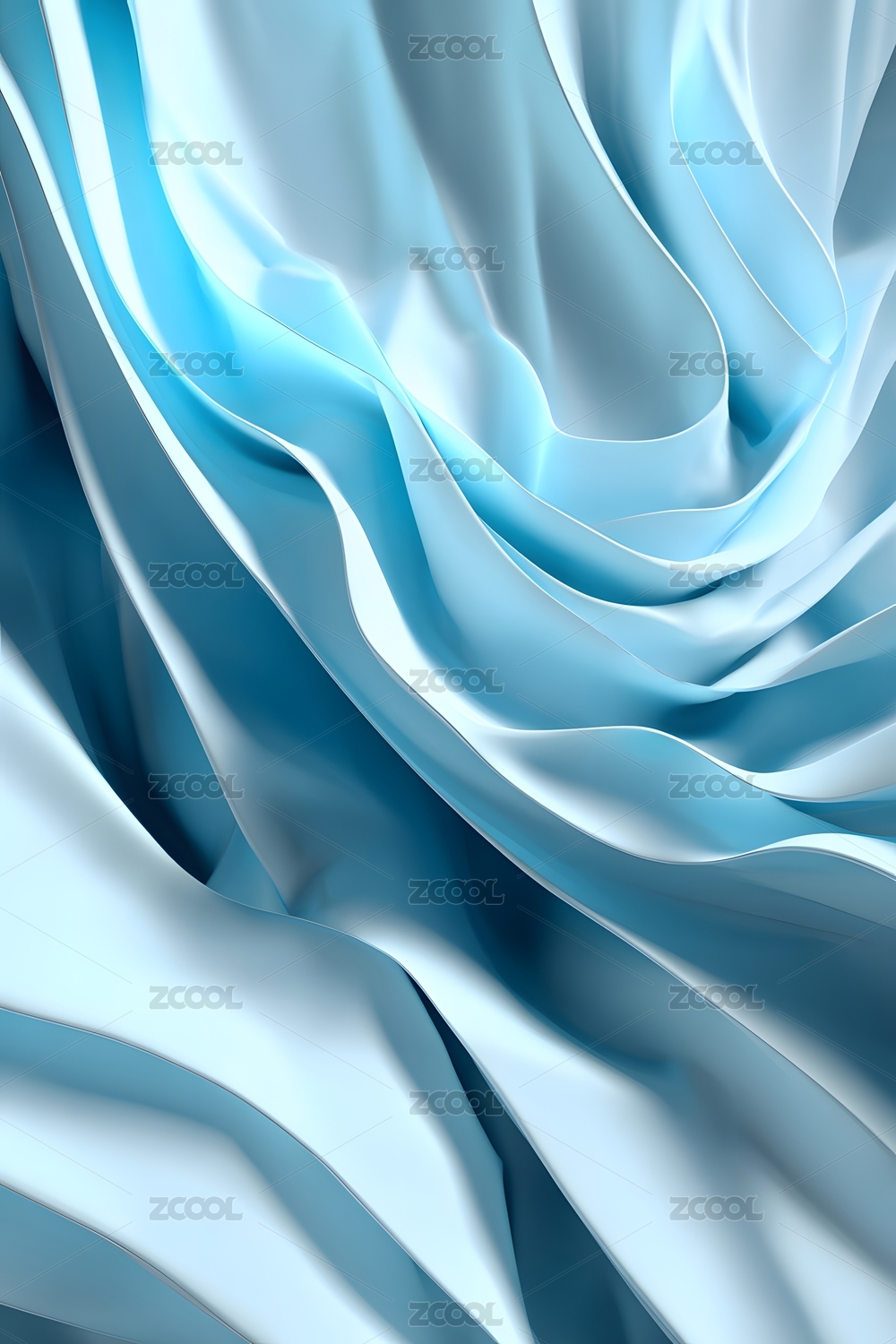 淡蓝色丝绸的流动与波纹光线柔和质感细腻