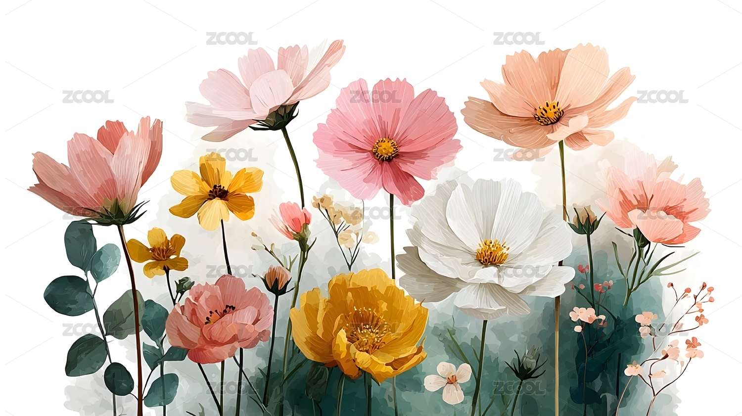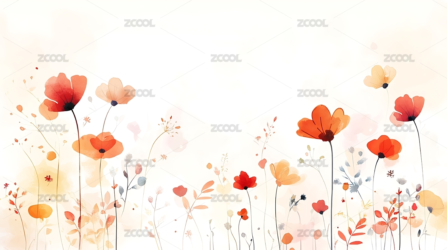 黑色,橙色,插画,绘画,花朵,花瓣,黄色,粉色,水彩,花卉
