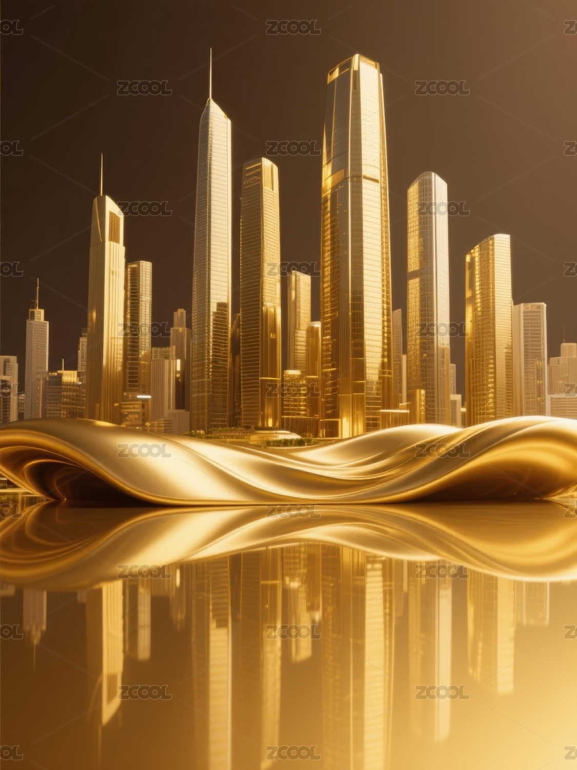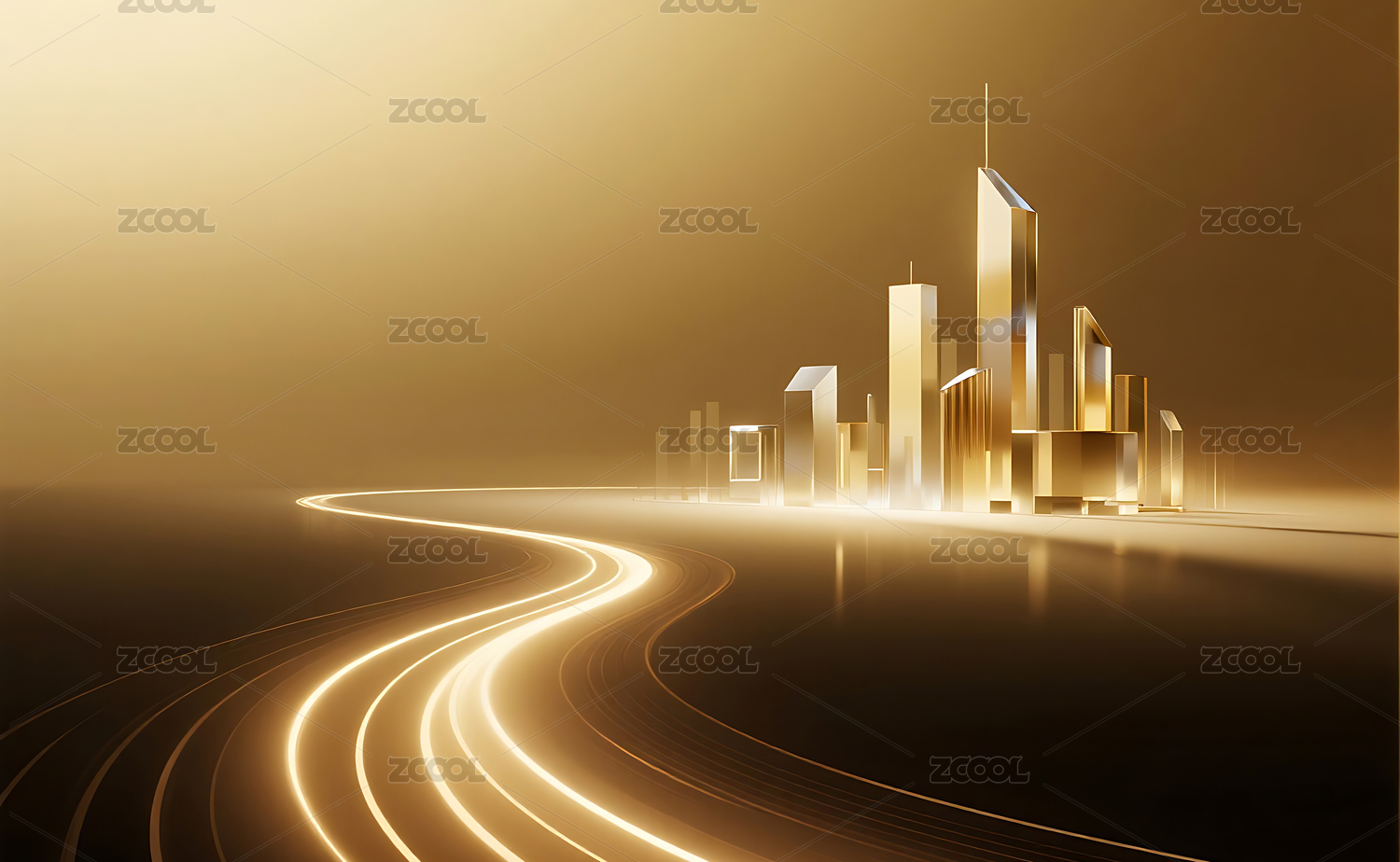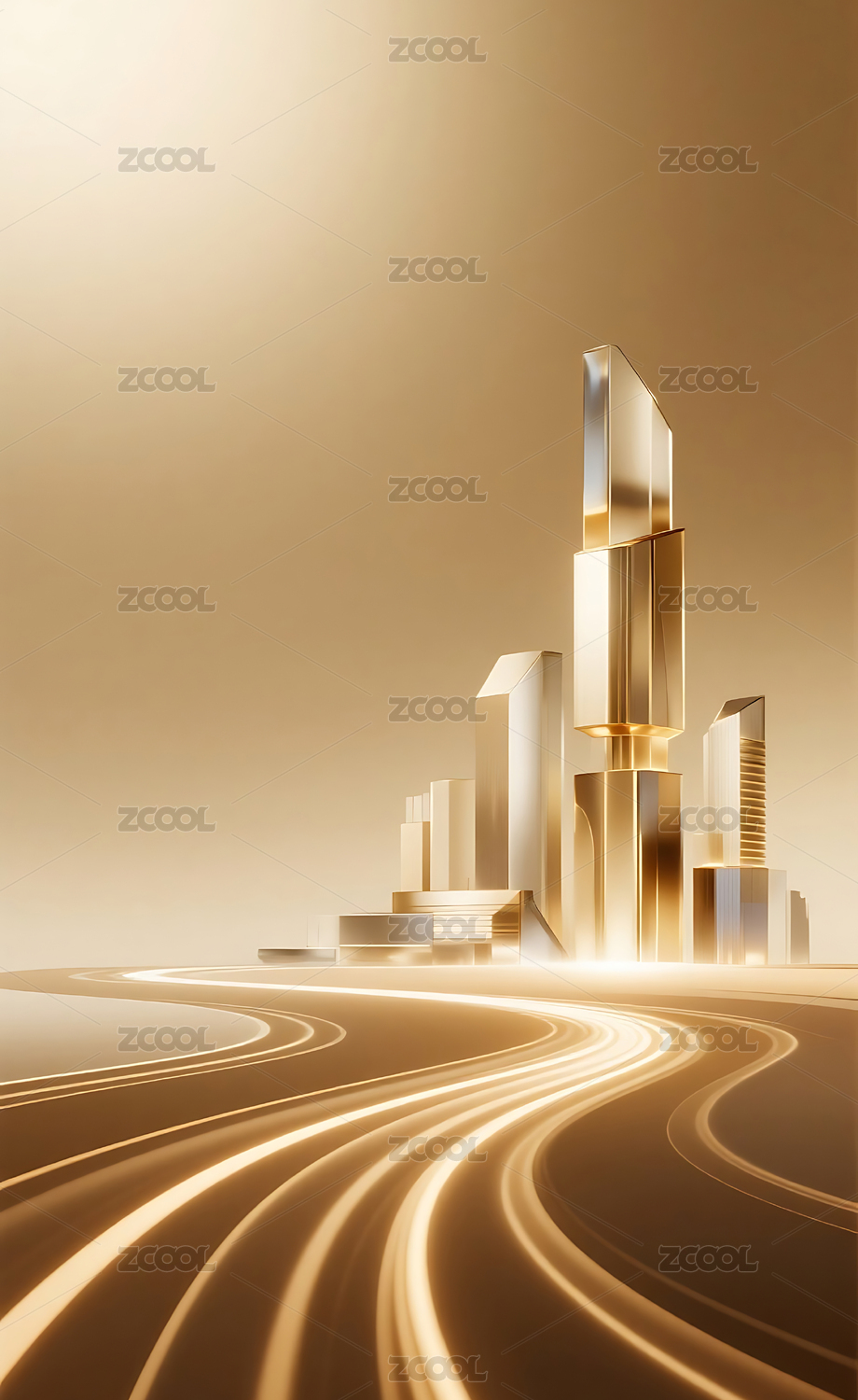 金色水晶质感城市建筑