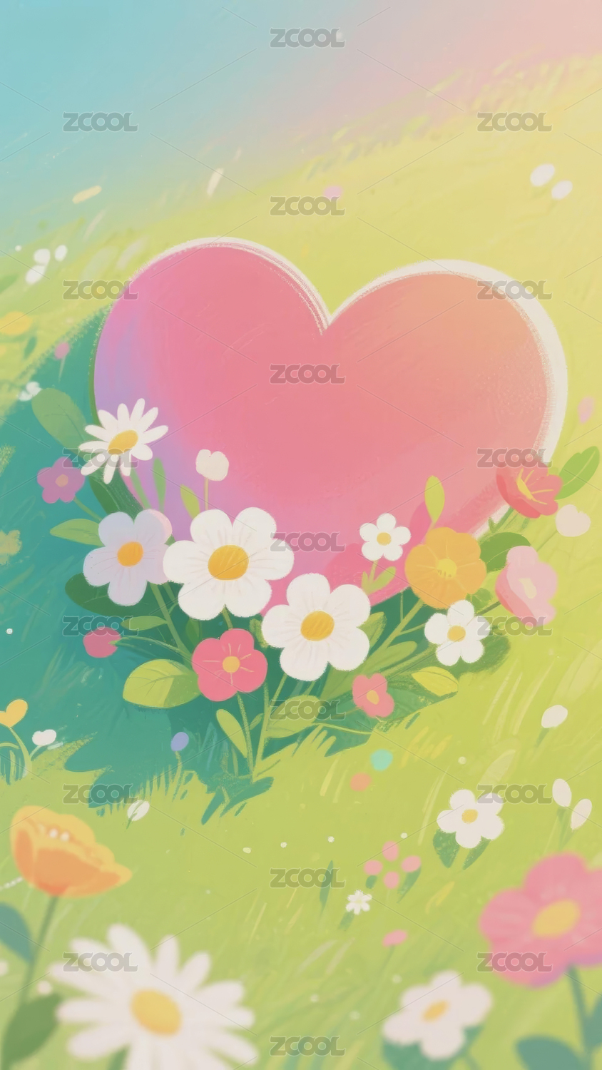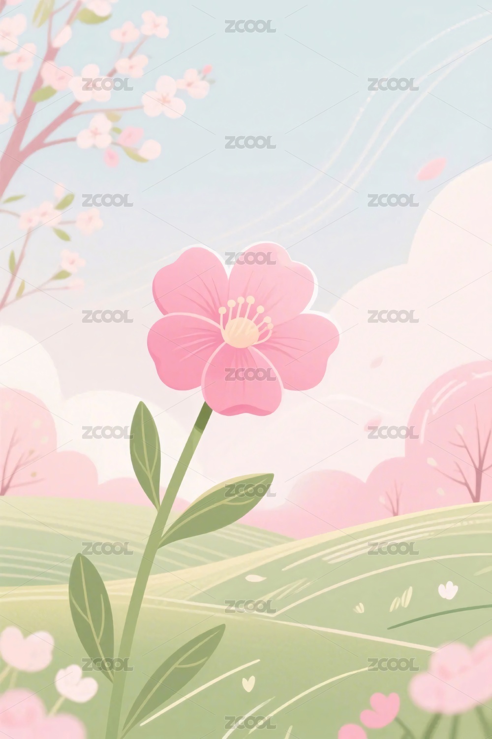插画,卡通,扁平,粉色,橙色,花朵,天空,草地,风景,香水