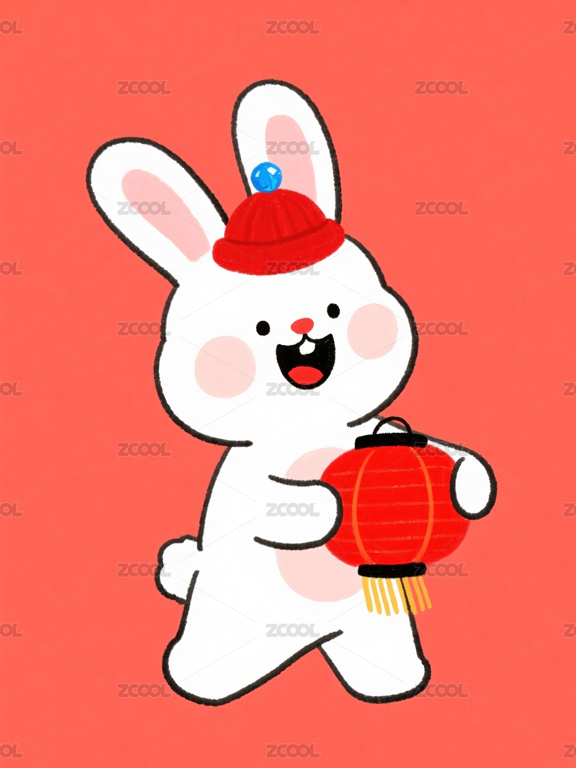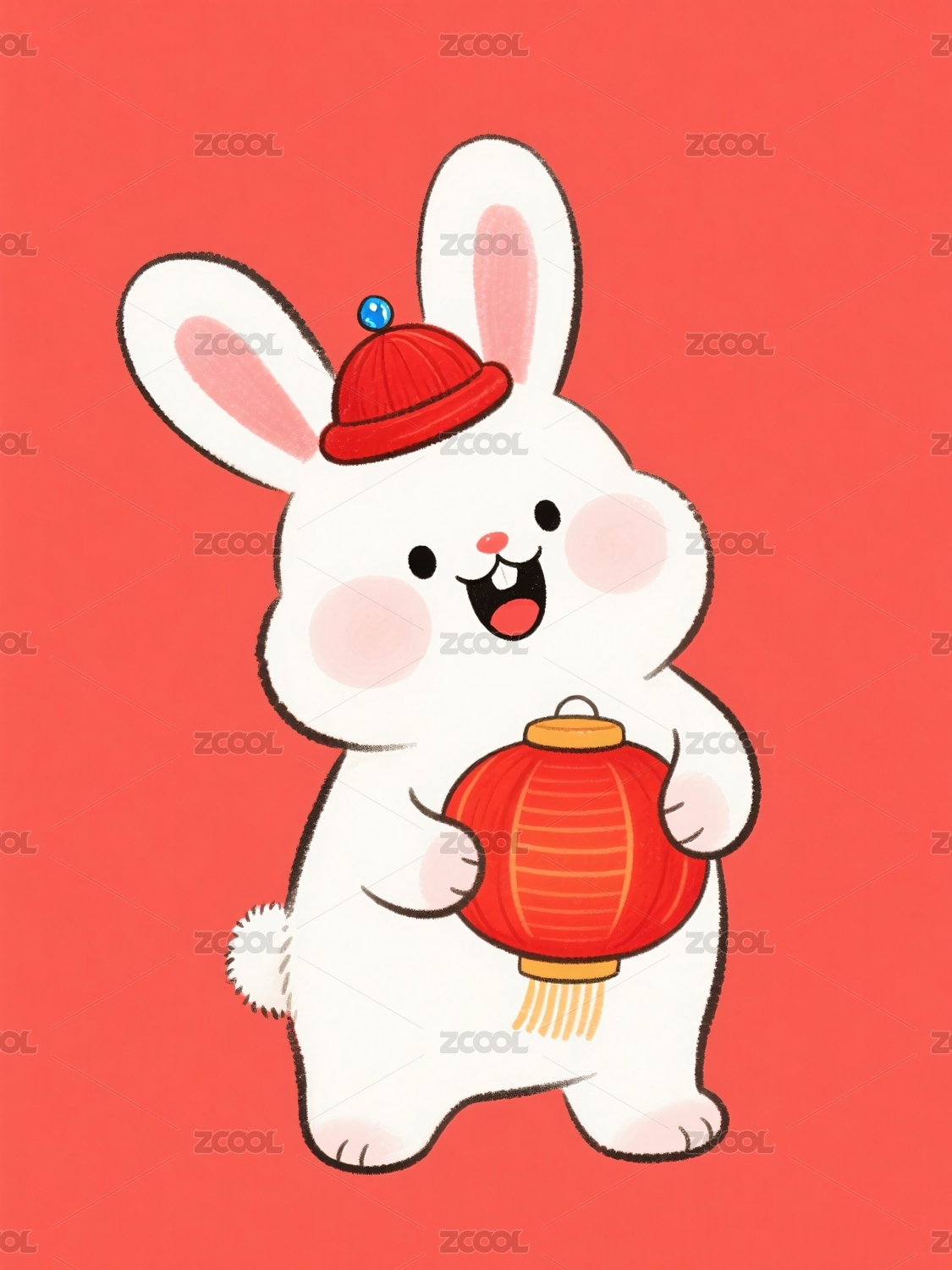 兔子手持灯笼庆祝新年