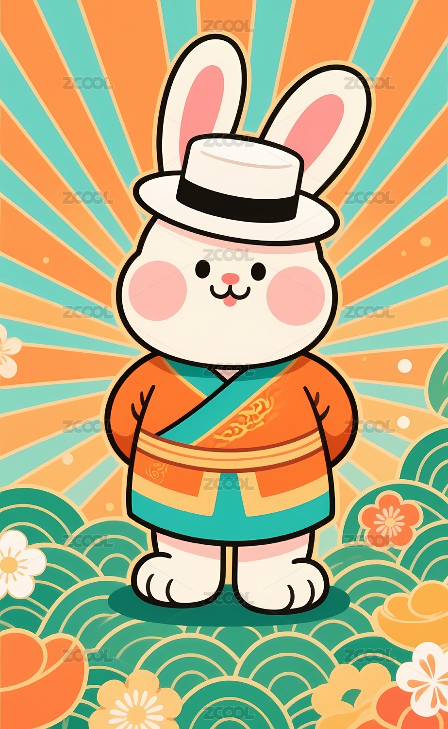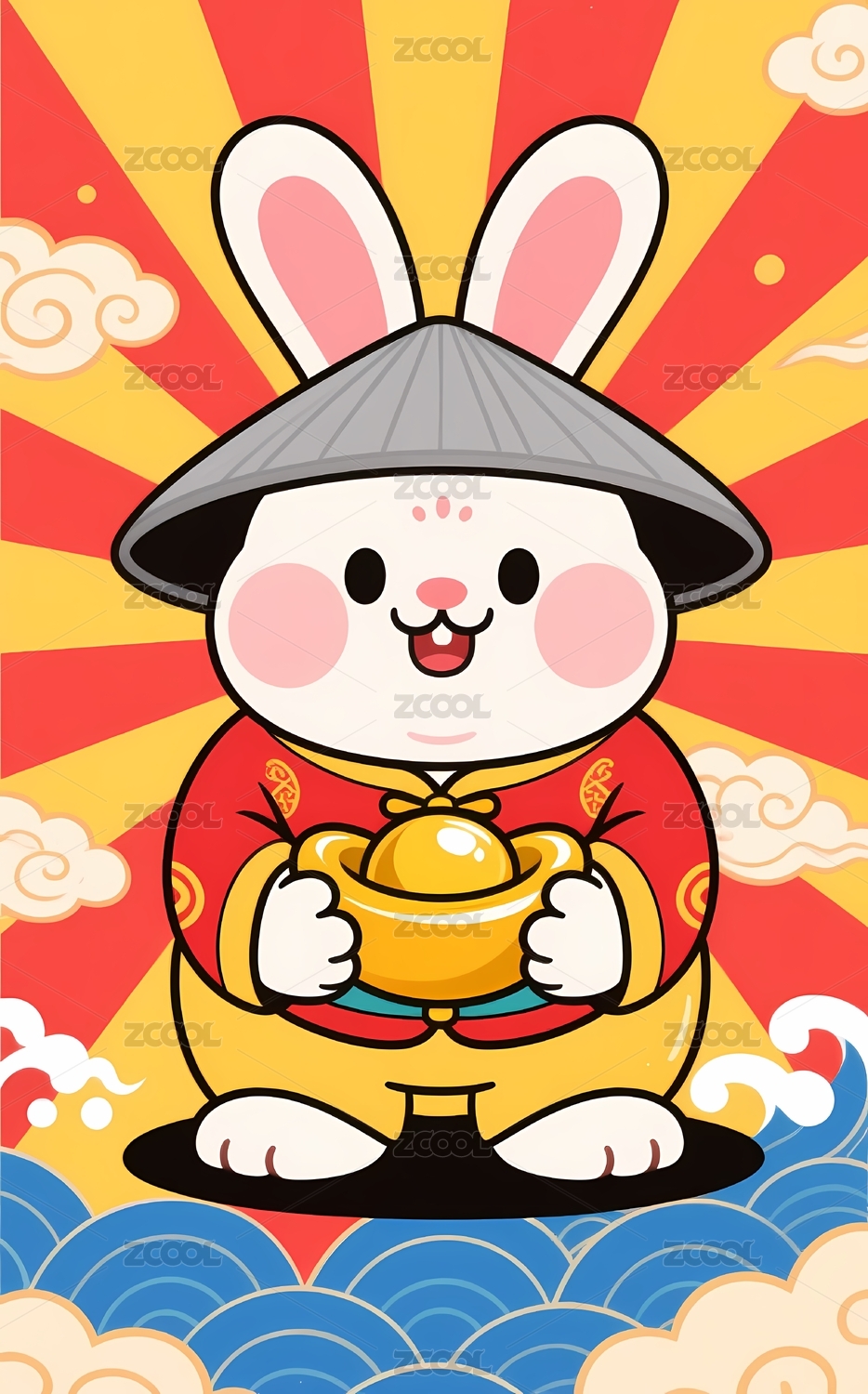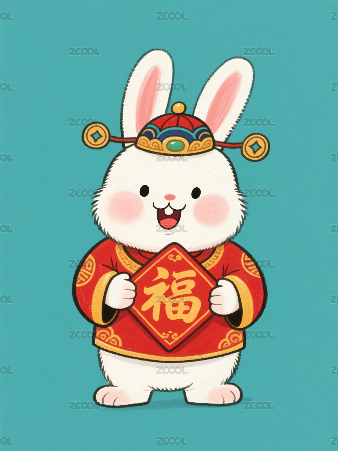 可爱兔子穿衣手持福字