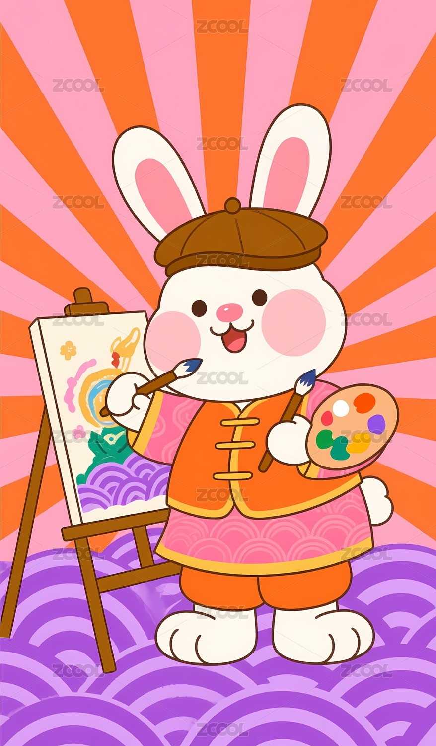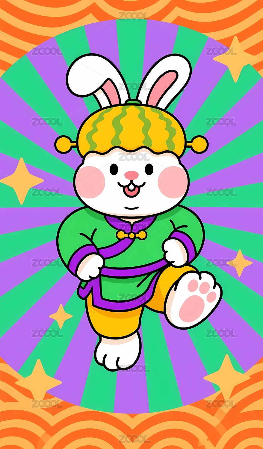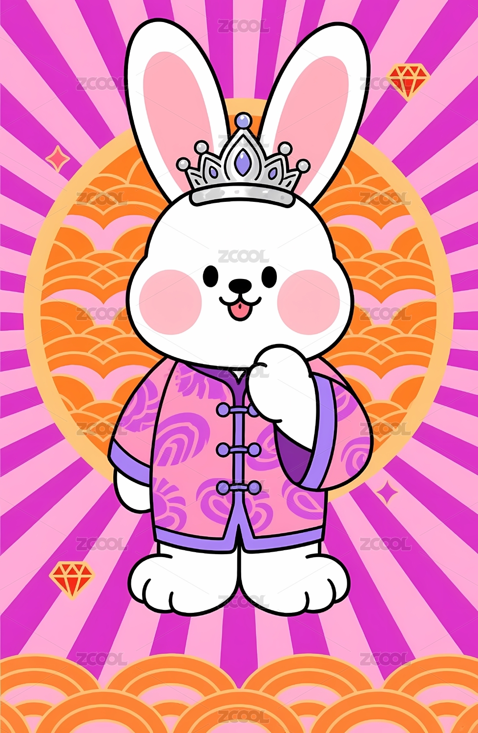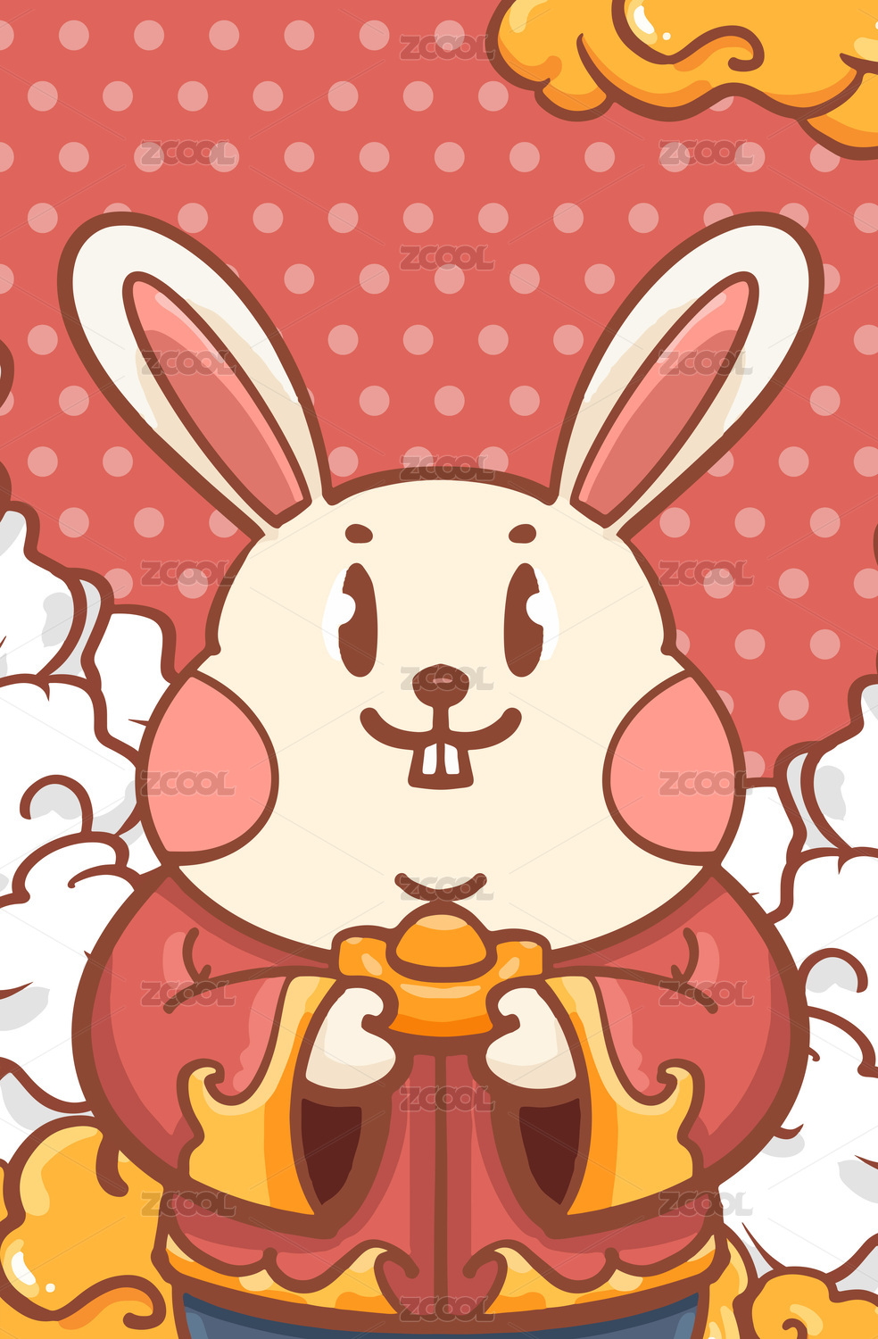 可爱兔子穿衣手持福字