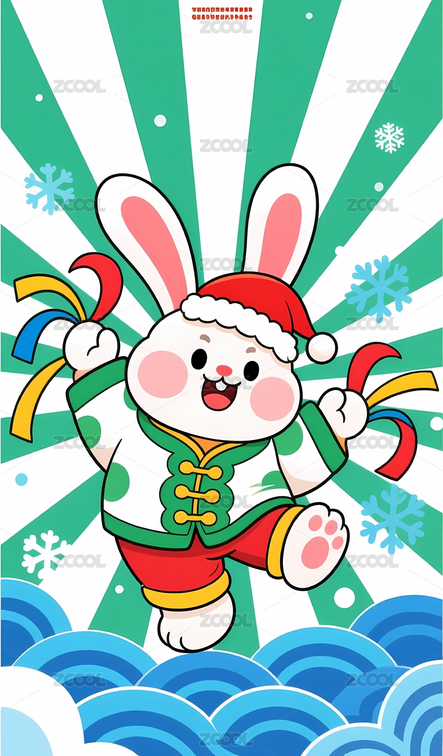 兔子身穿红色服装招手
