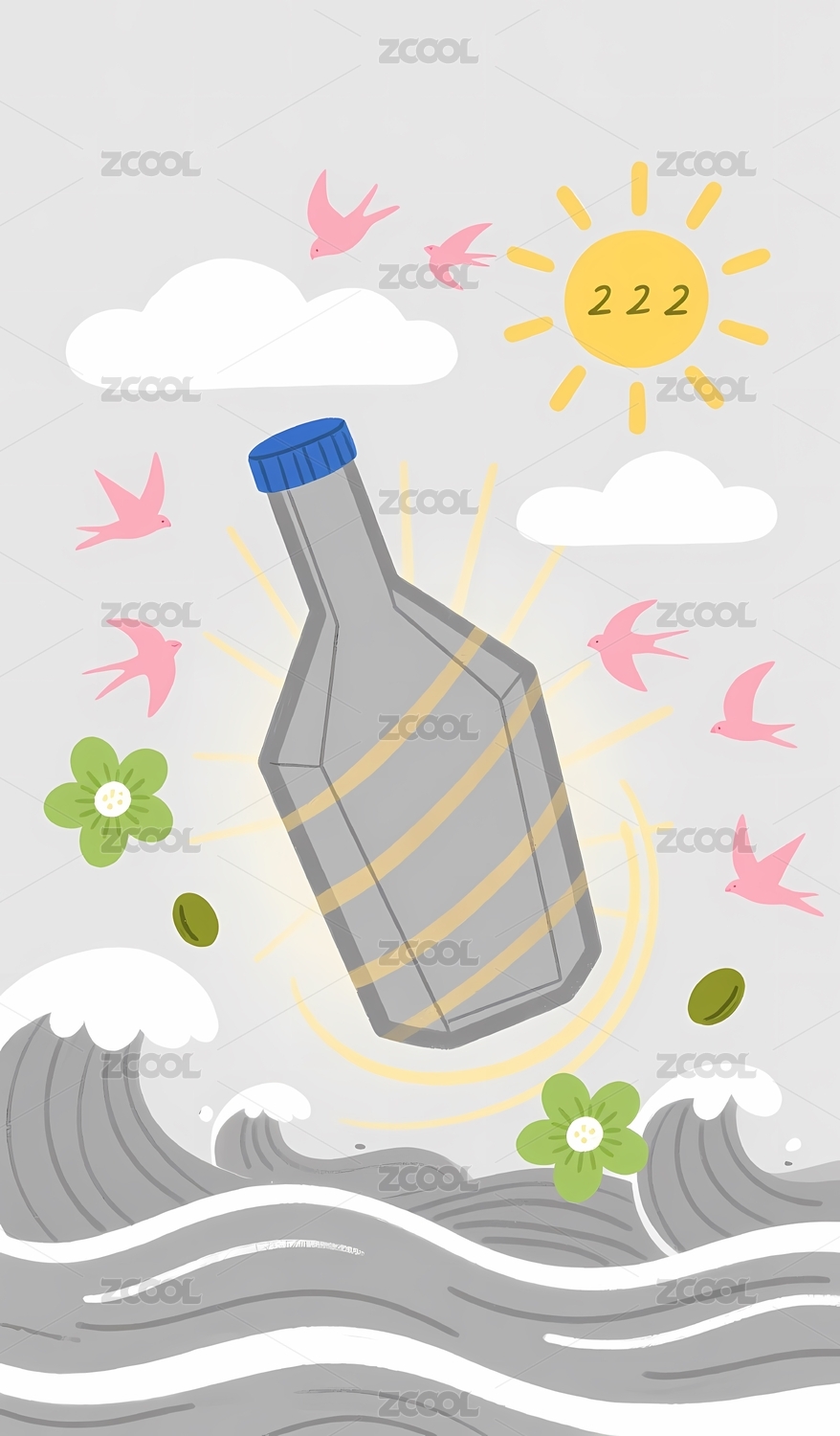 一个紫绿色的啤酒瓶玻璃瓶3D插画