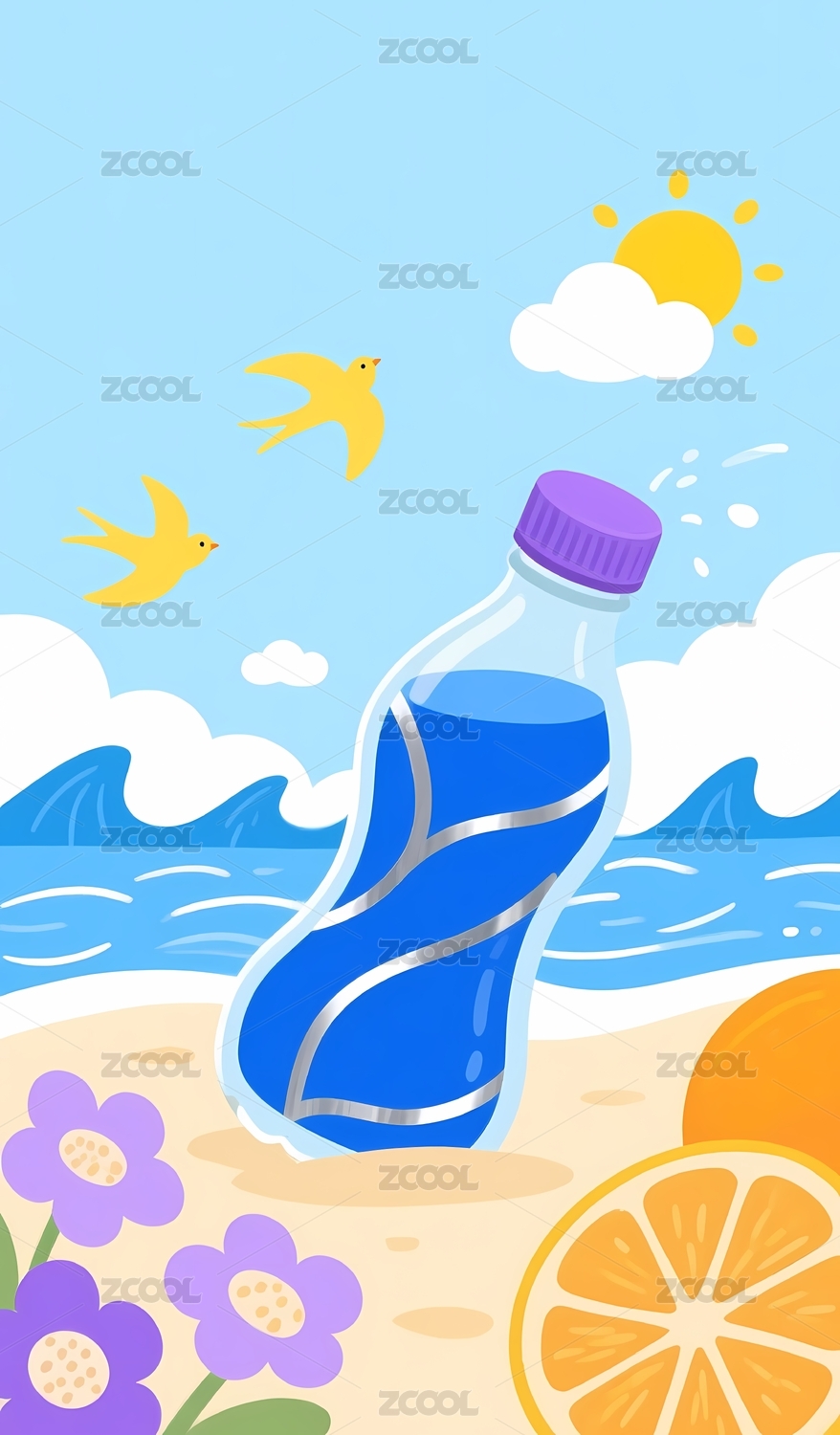 插画,卡通,扁平,背景,波浪,装饰,黄色,色彩,白色,紫色