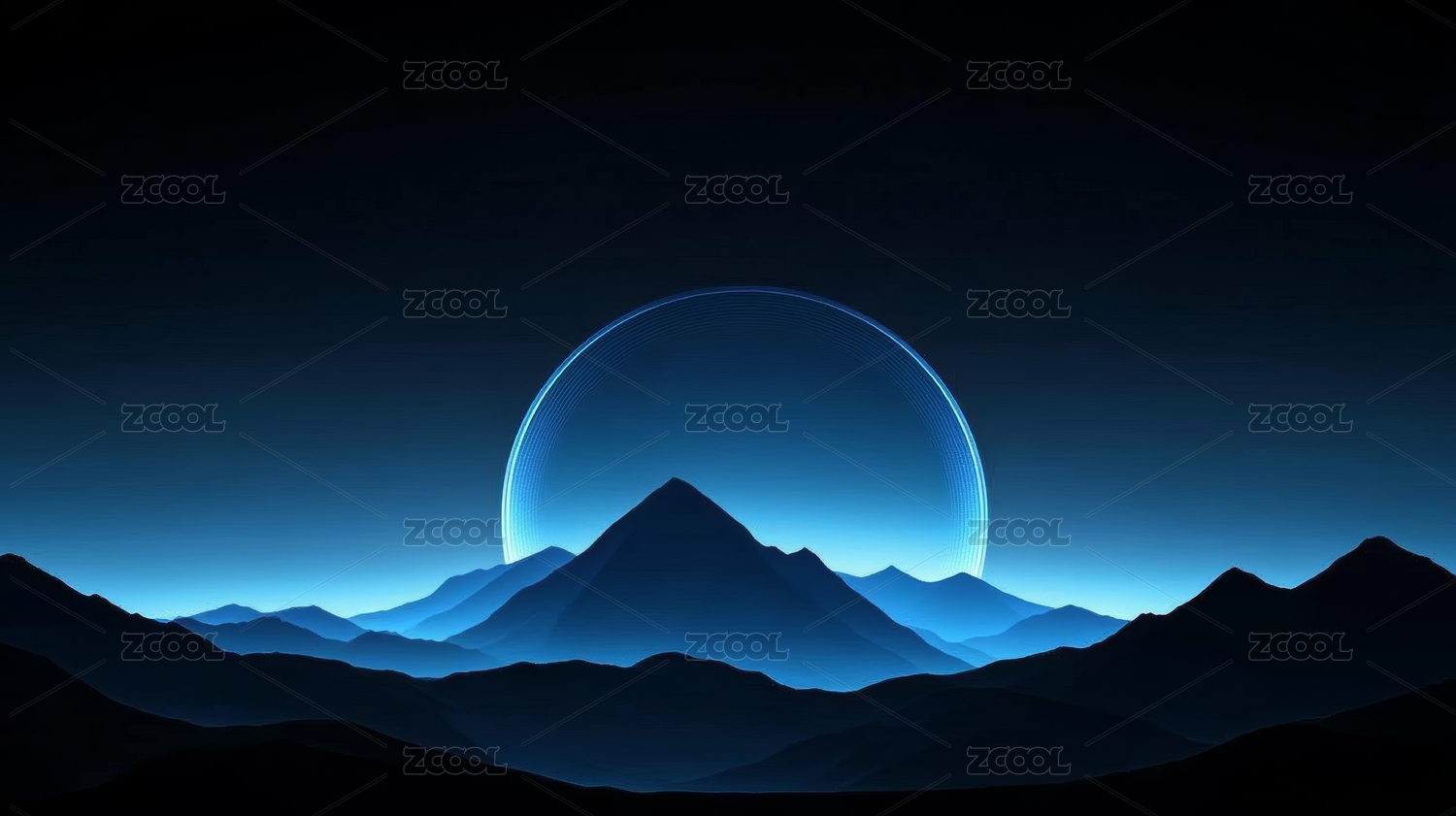 蓝夜山峦科幻感背景场景
