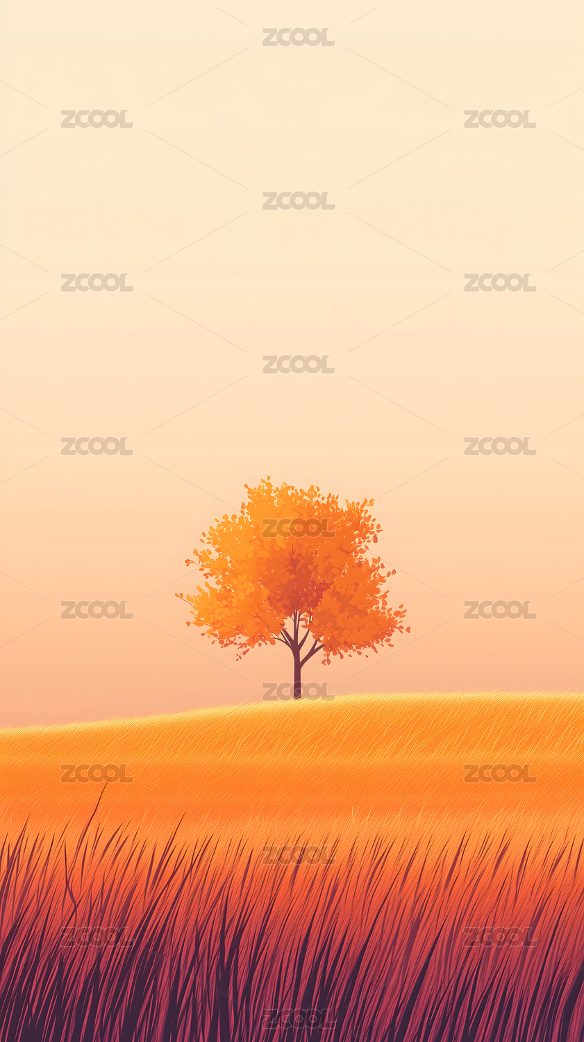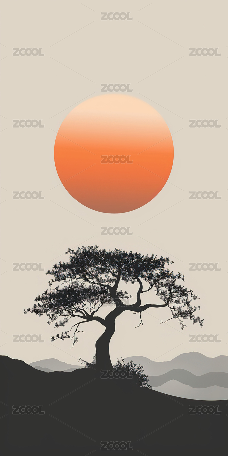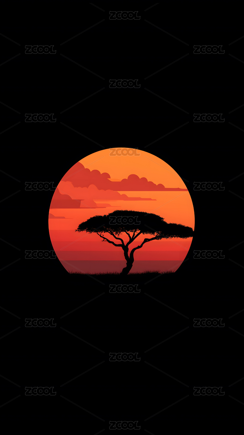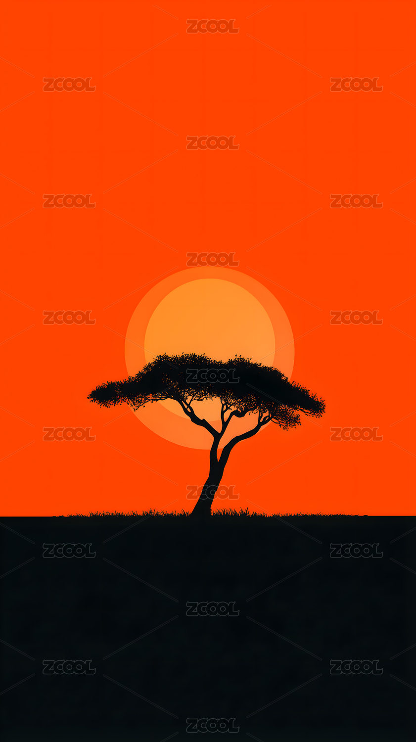 天空,风景,树木,自然,静谧,光影,简洁,温暖,橙色,剪影