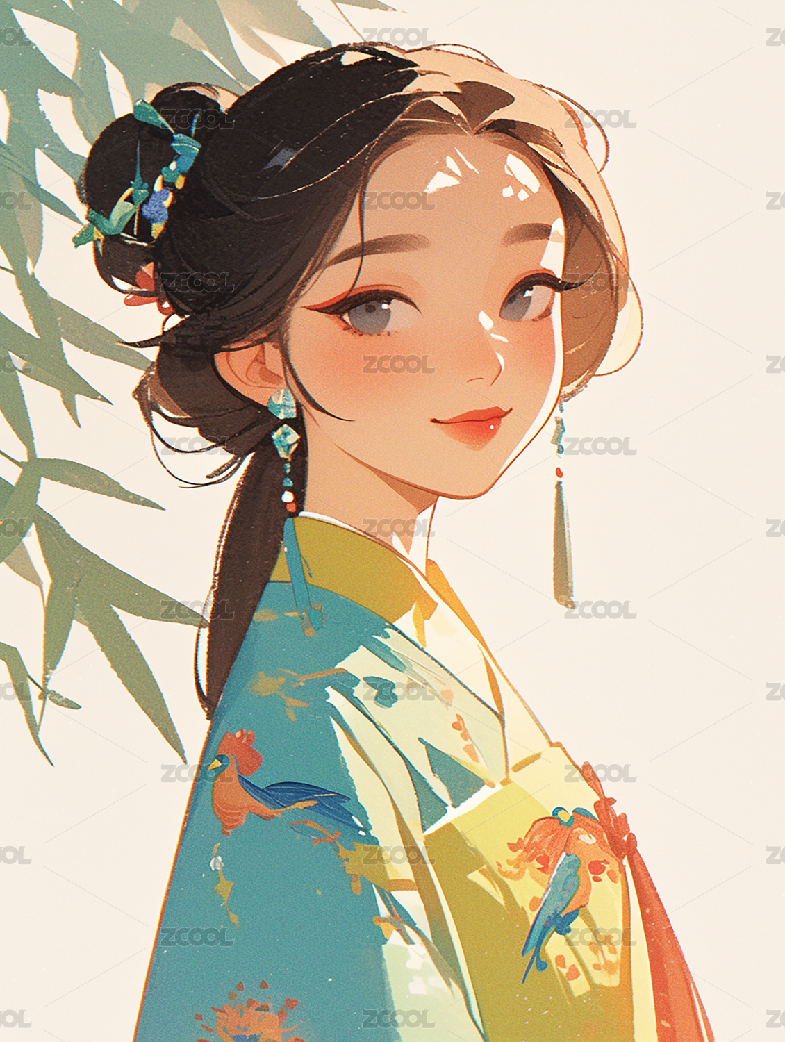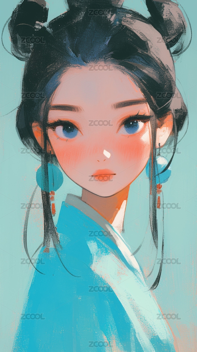 背景,装饰,蓝色,美丽,粉色,黄色,眼睛,耳朵,少女,发型