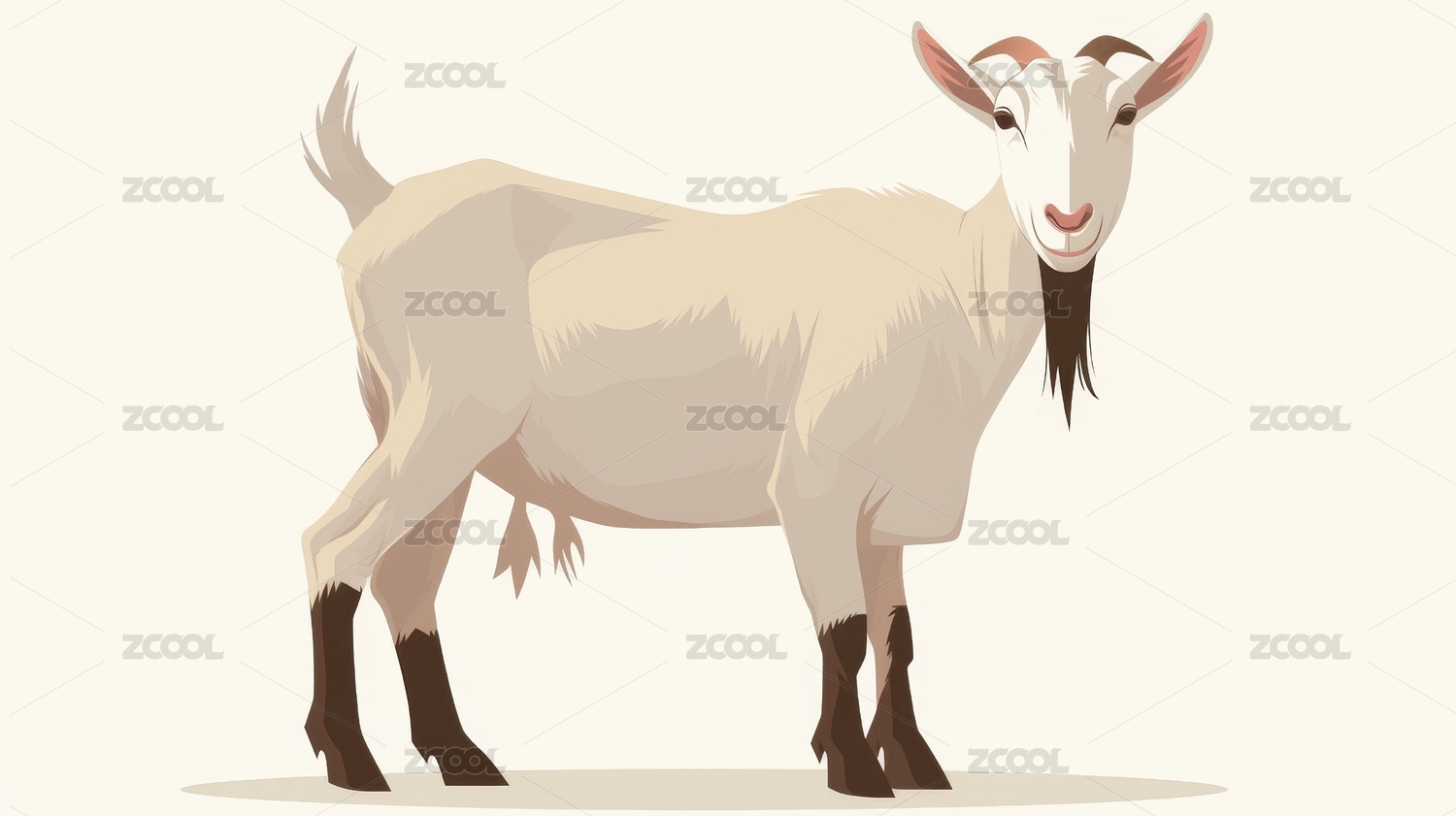 山羊,动物,插画,可爱,站立,白色背景,棕色,角,哺乳动物,家畜