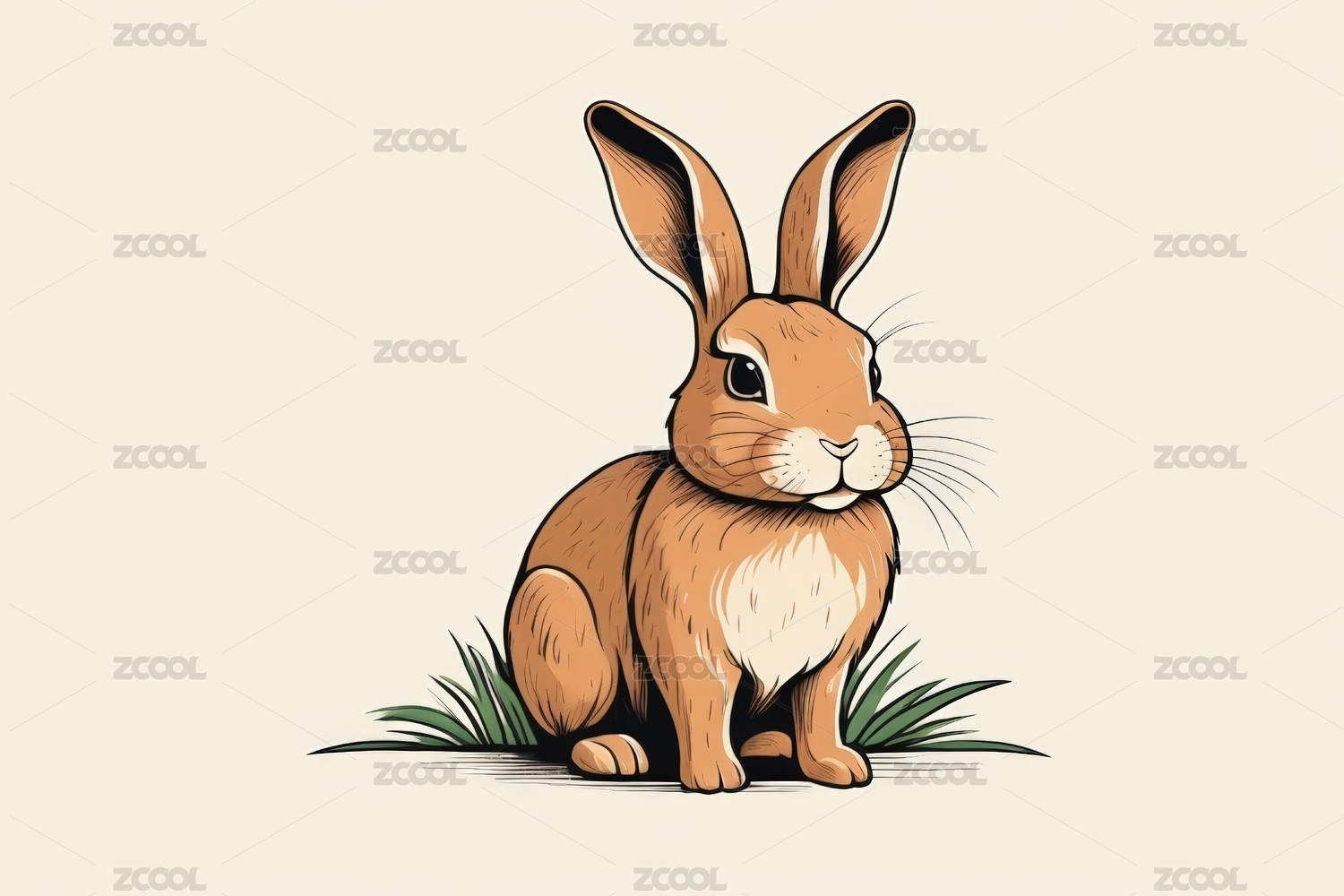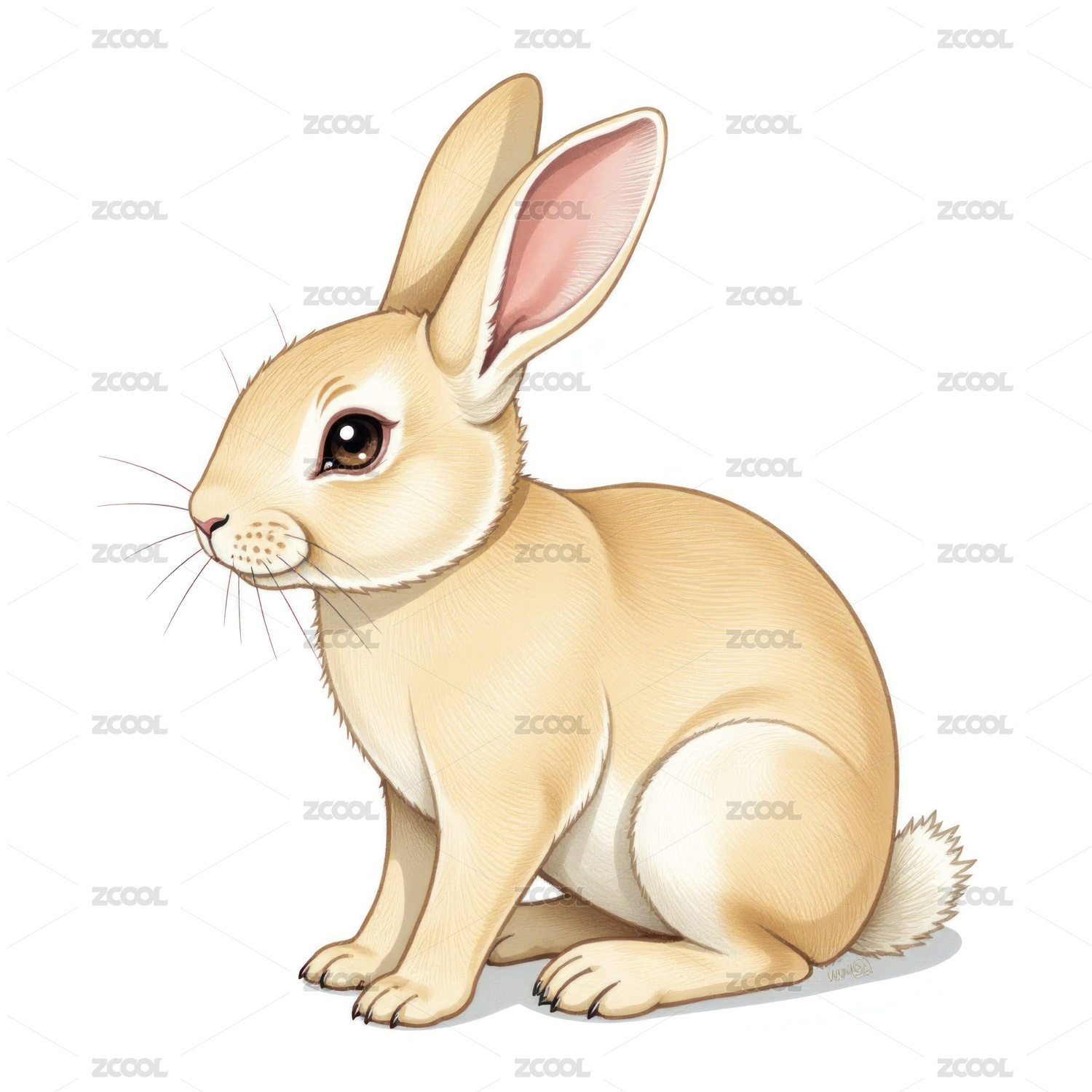 兔子,浅棕色,大耳朵,坐着,白色背景,可爱,哺乳动物,小动物,毛茸茸,耳朵