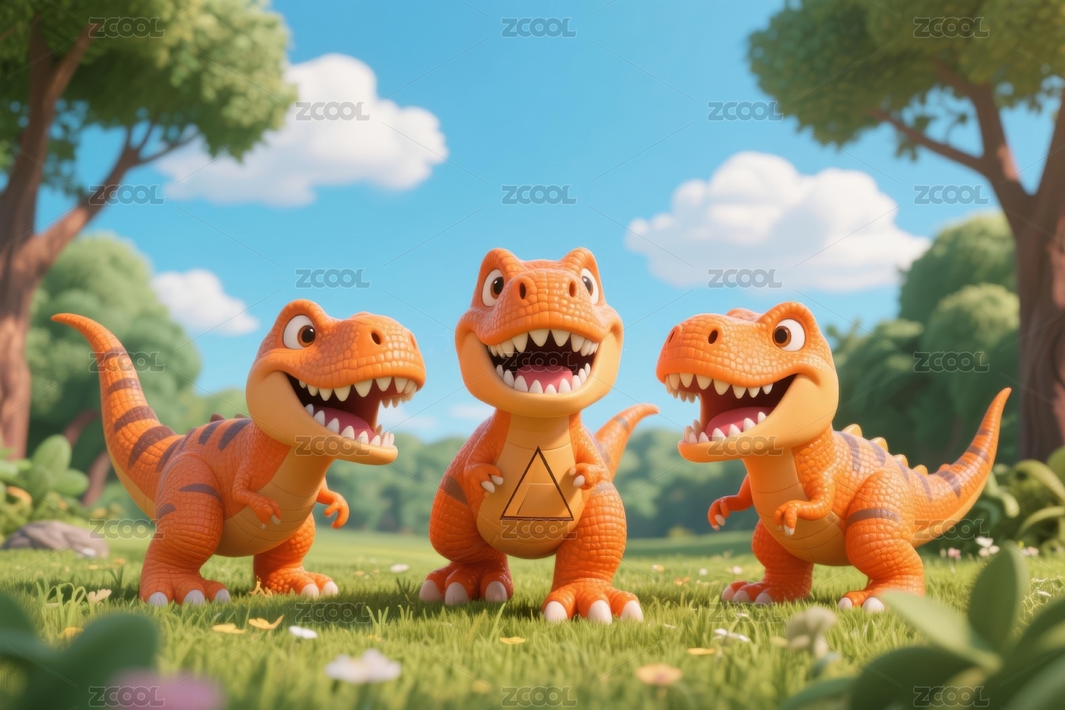 恐龙卡通草地场景