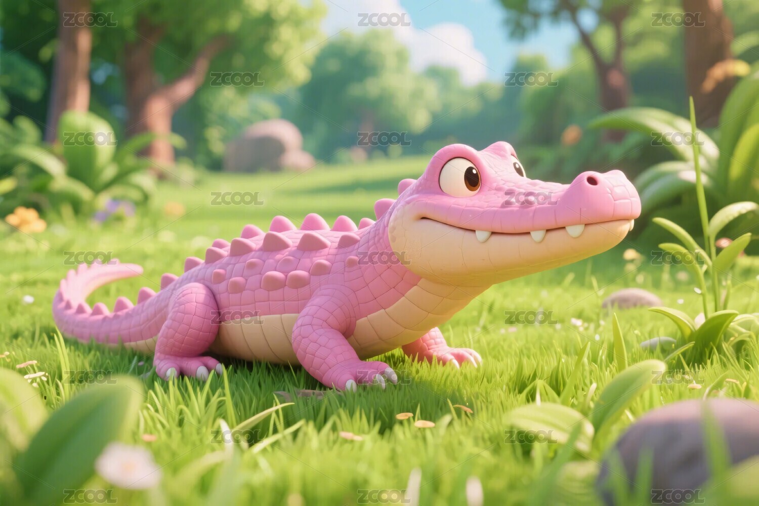 粉色卡通鳄鱼插画