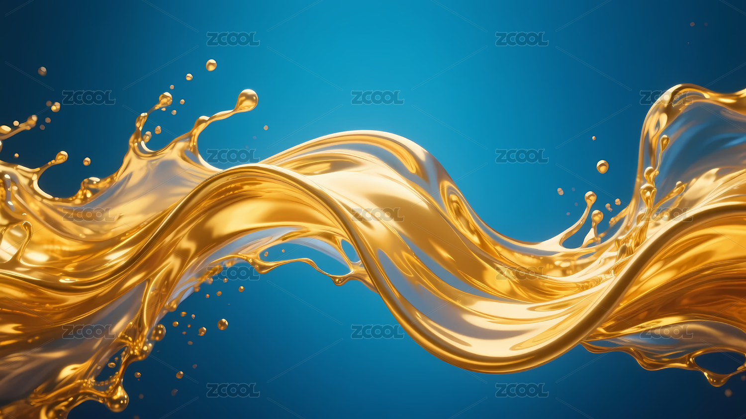 金色波浪液体深蓝背景
