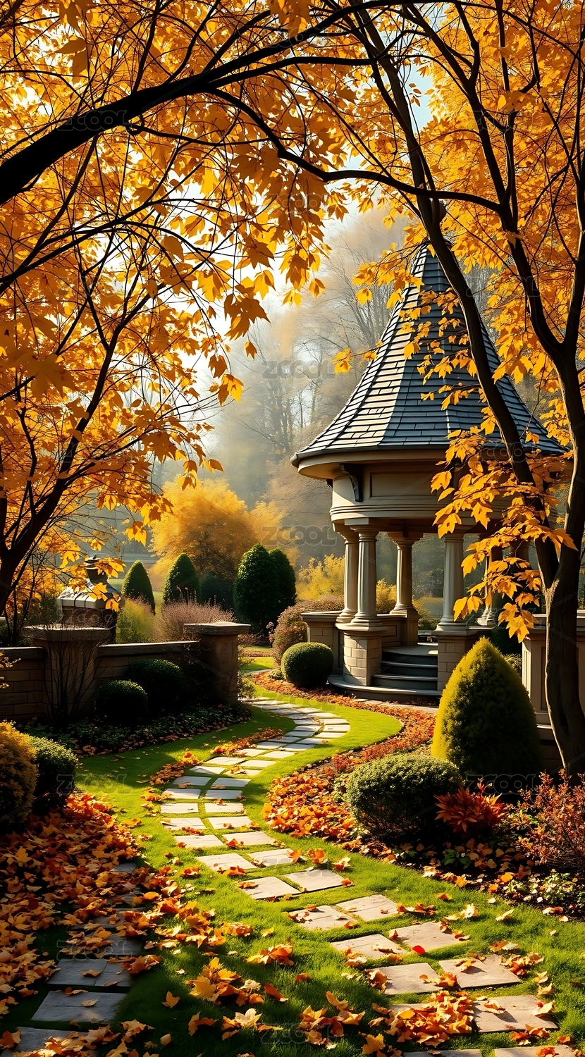 秋日花园中的石阶小径