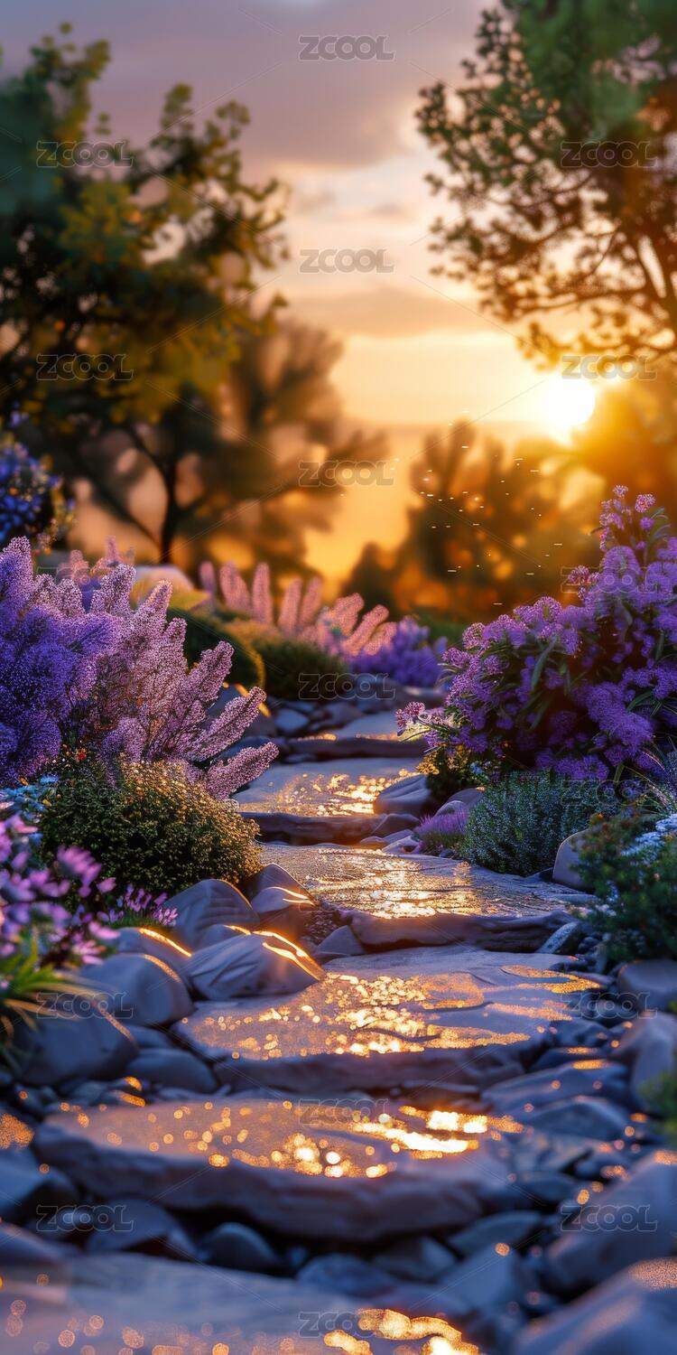 夕阳下的花园小径