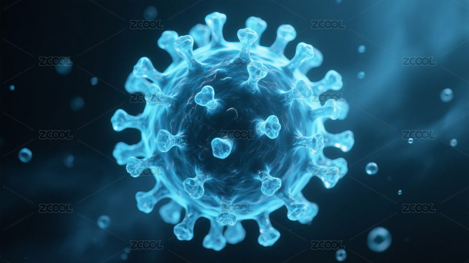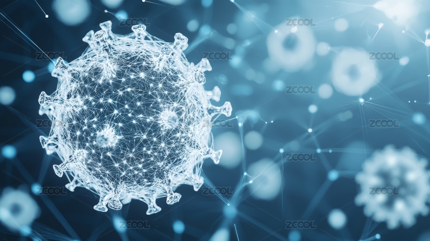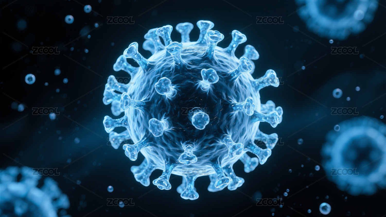 蓝色病毒粒子与模糊图案
