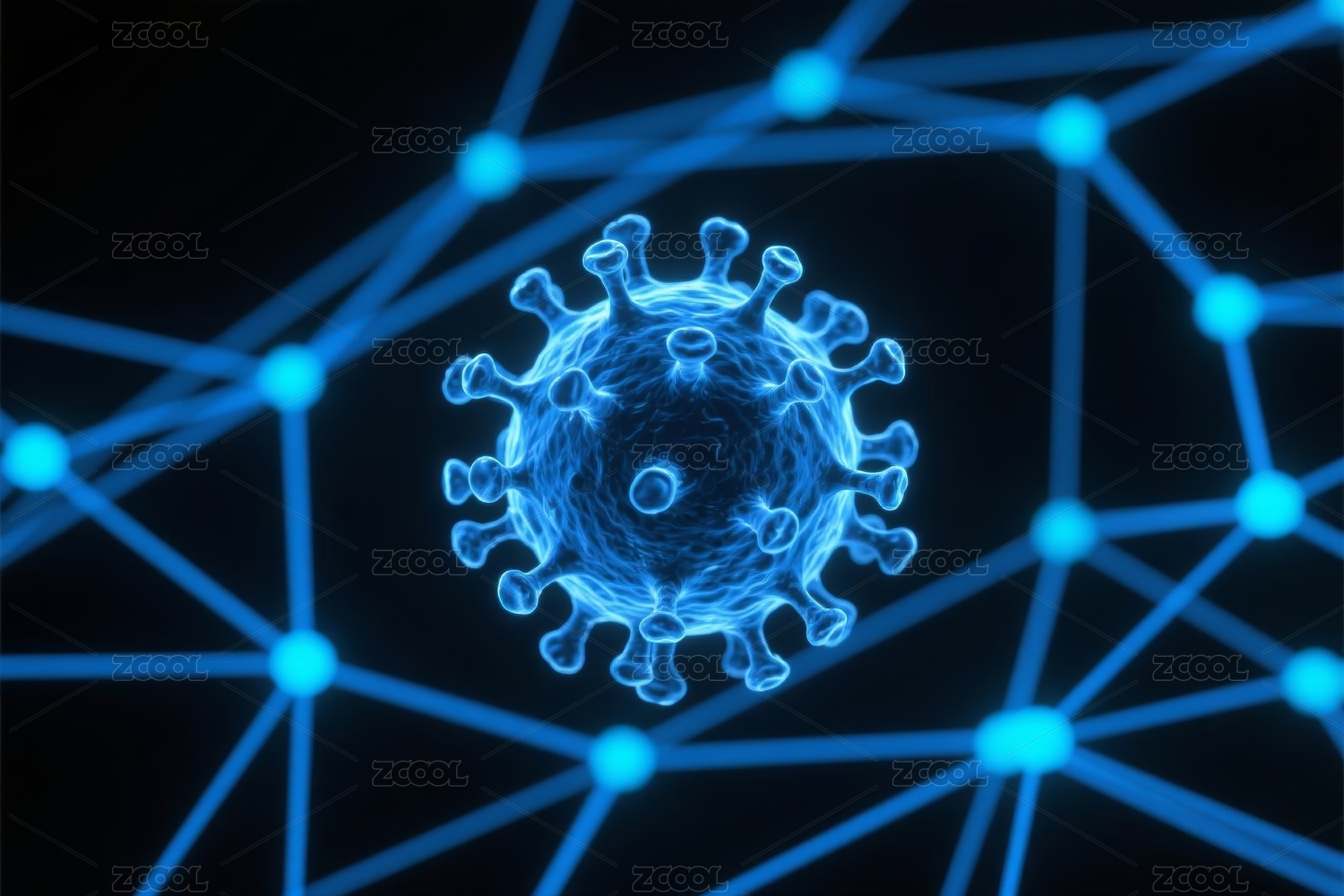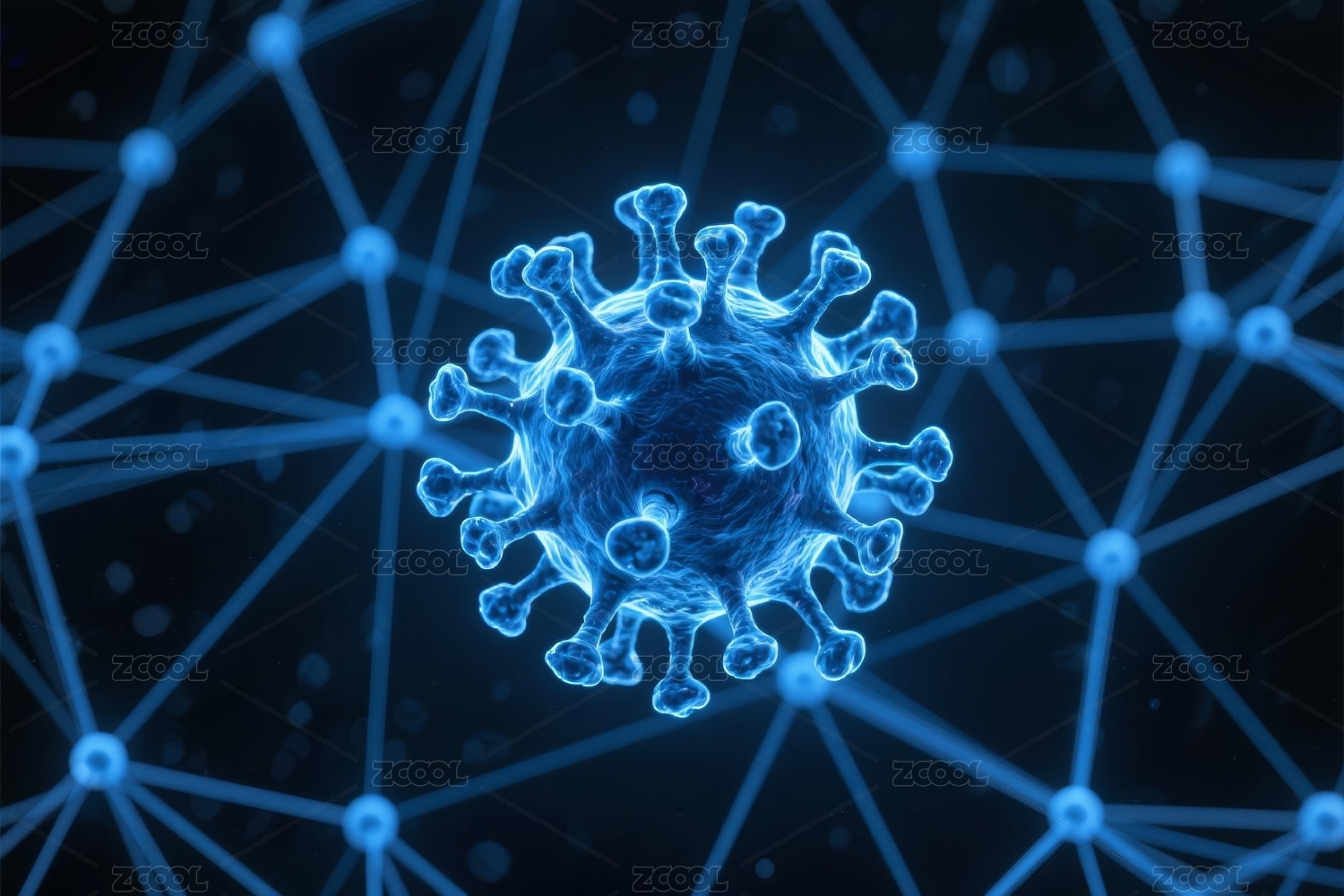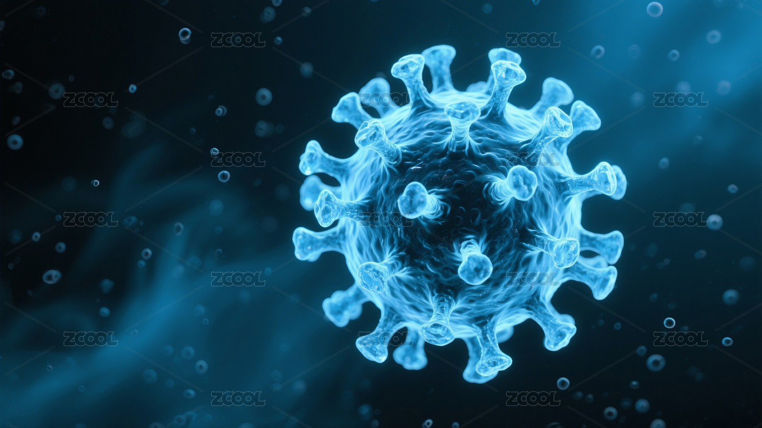 蓝色病毒粒子与模糊图案