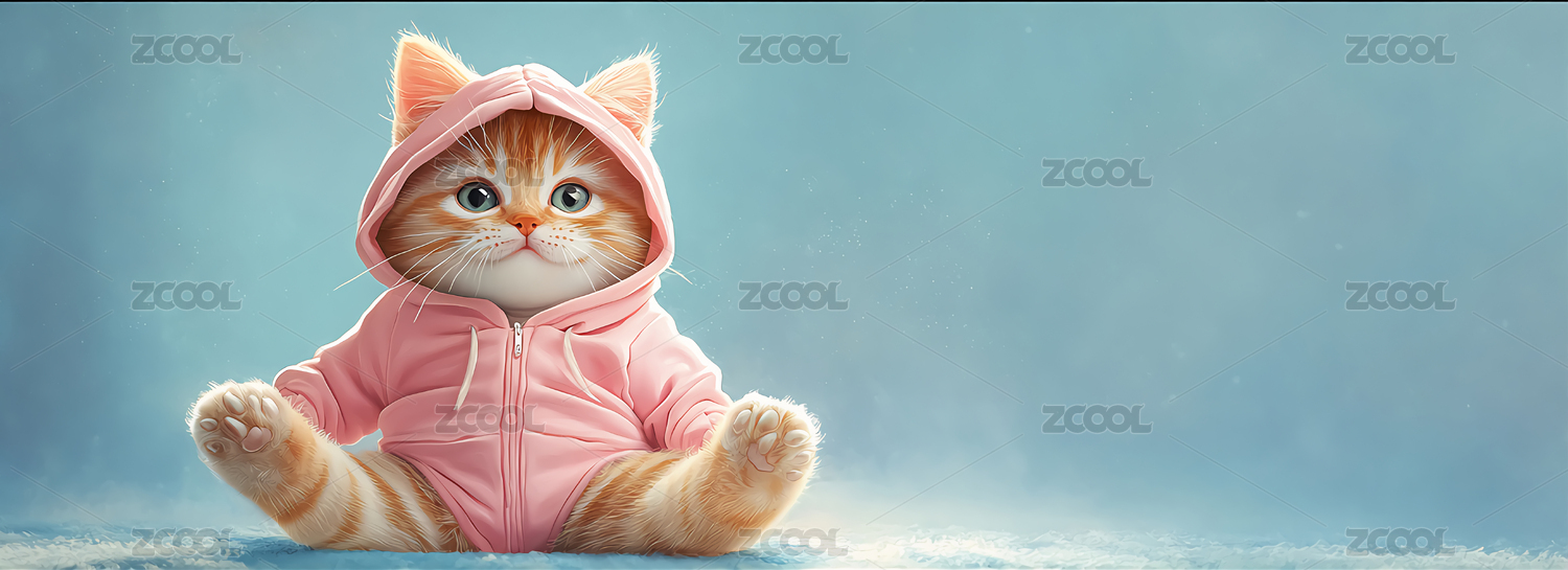 可爱风,猫咪,背景,壁纸,三维,场景,蓝色,渐变,光影,睡衣
