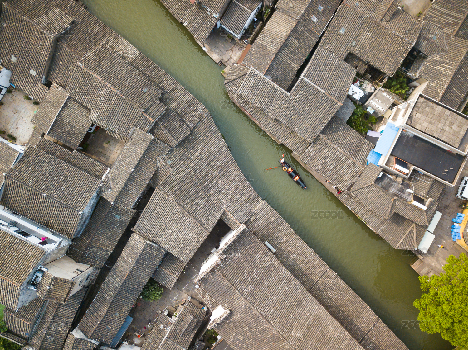 航拍梦里水乡古韵新景浙江绍兴柯桥古镇