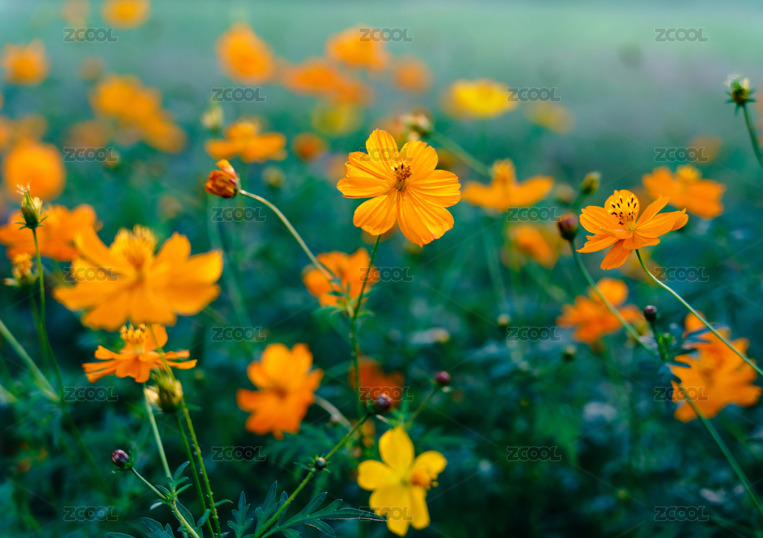 盛开黄色花朵的植物波斯菊