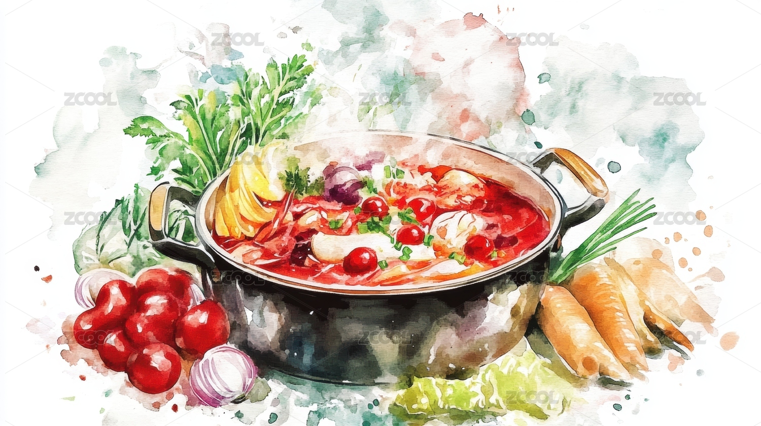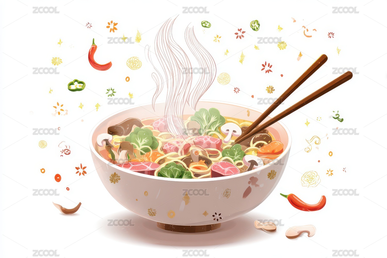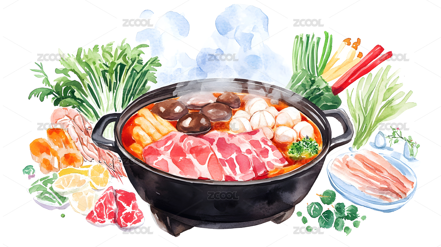 春节团圆年夜饭火锅国潮食物节日美食插画