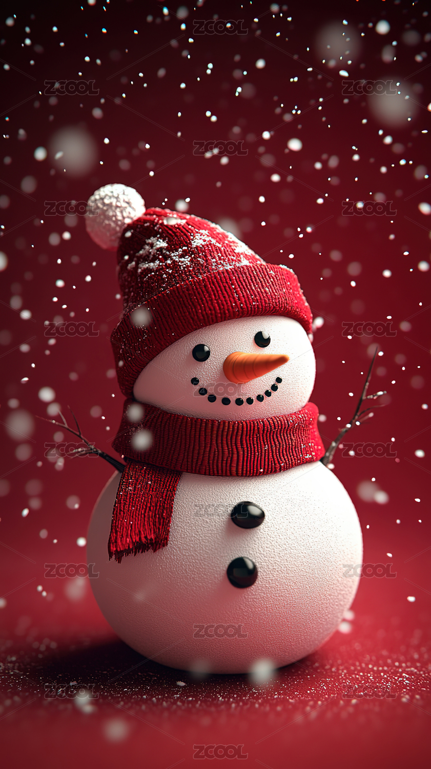 竖屏3d卡通戴着圣诞帽的可爱雪人