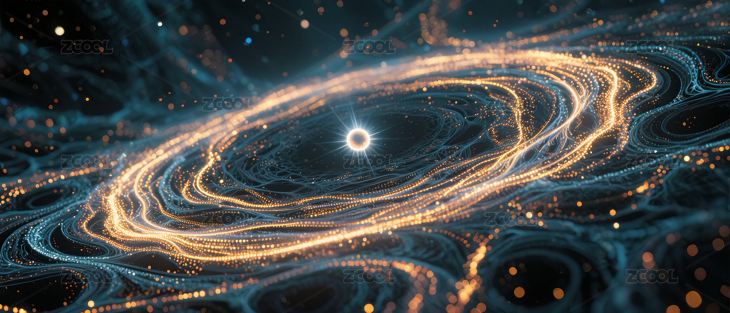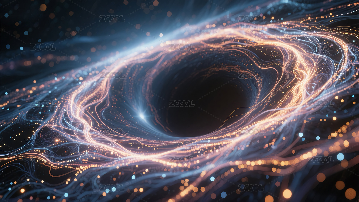 宇宙黑洞中心能量漩涡与星光交织的抽象艺术