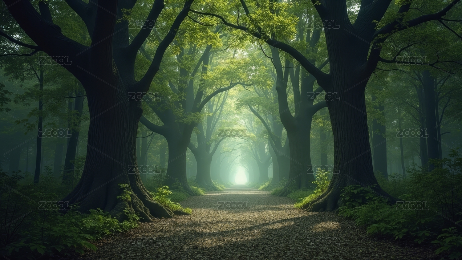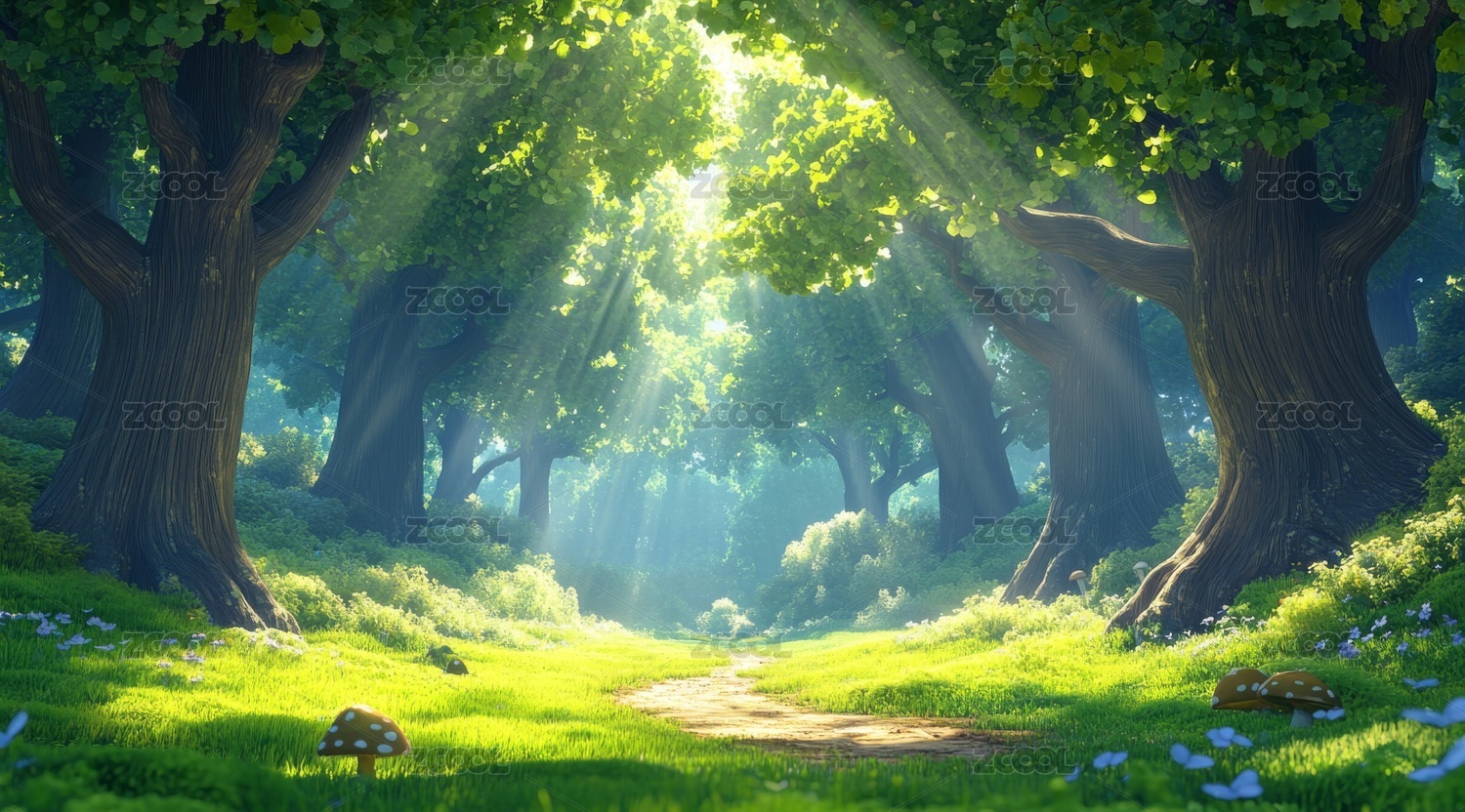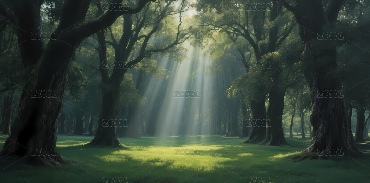 阳光穿透森林,绿意盎然