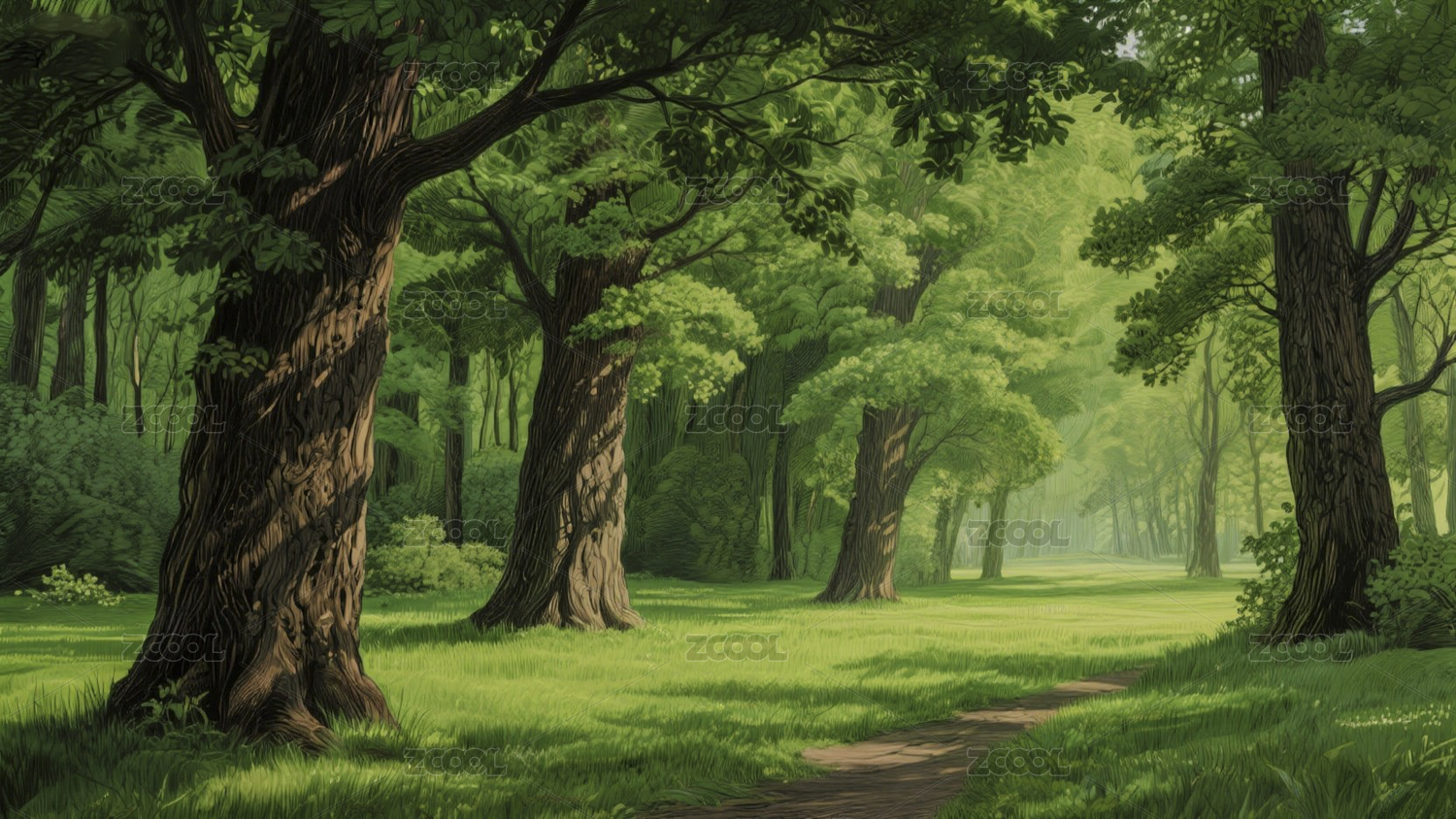 森林小径插画艺术