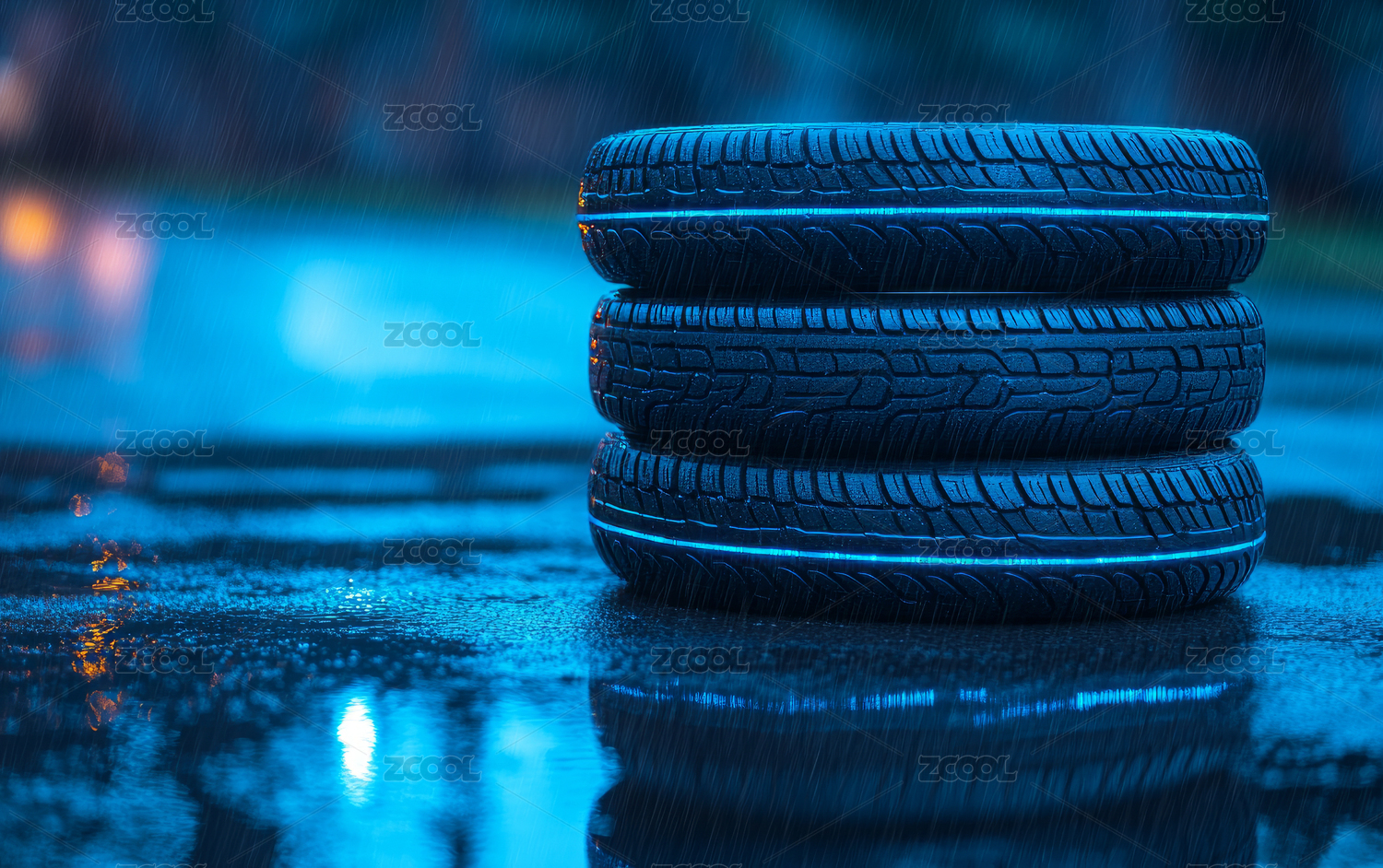 雨天夜晚汽车轮胎特写车辆维修服务广告背景