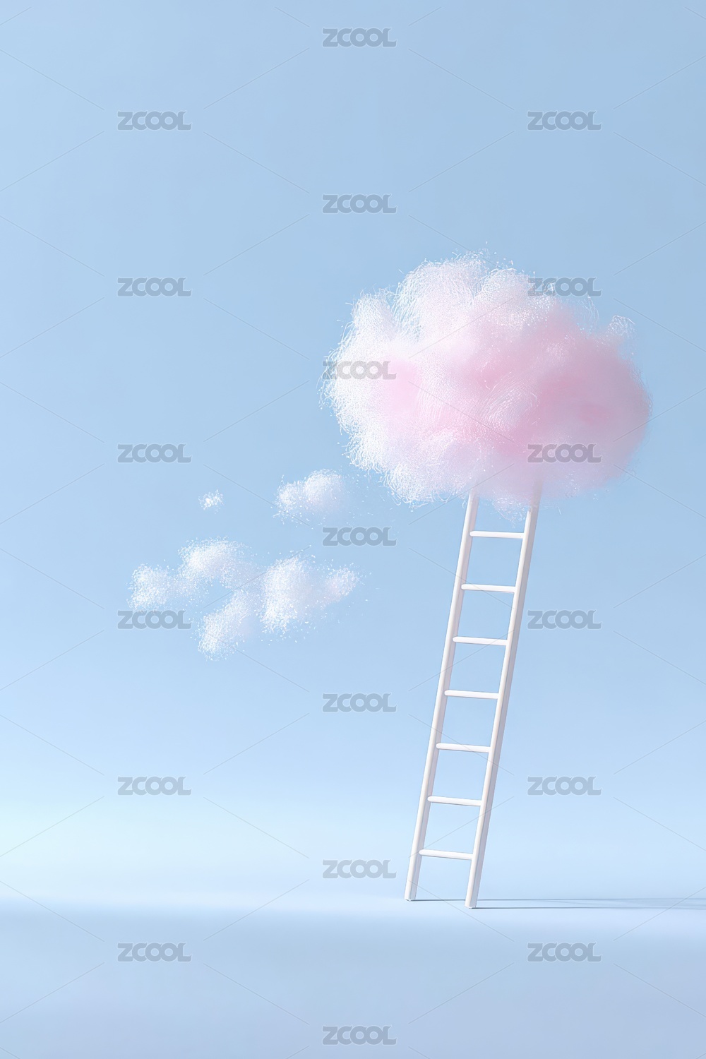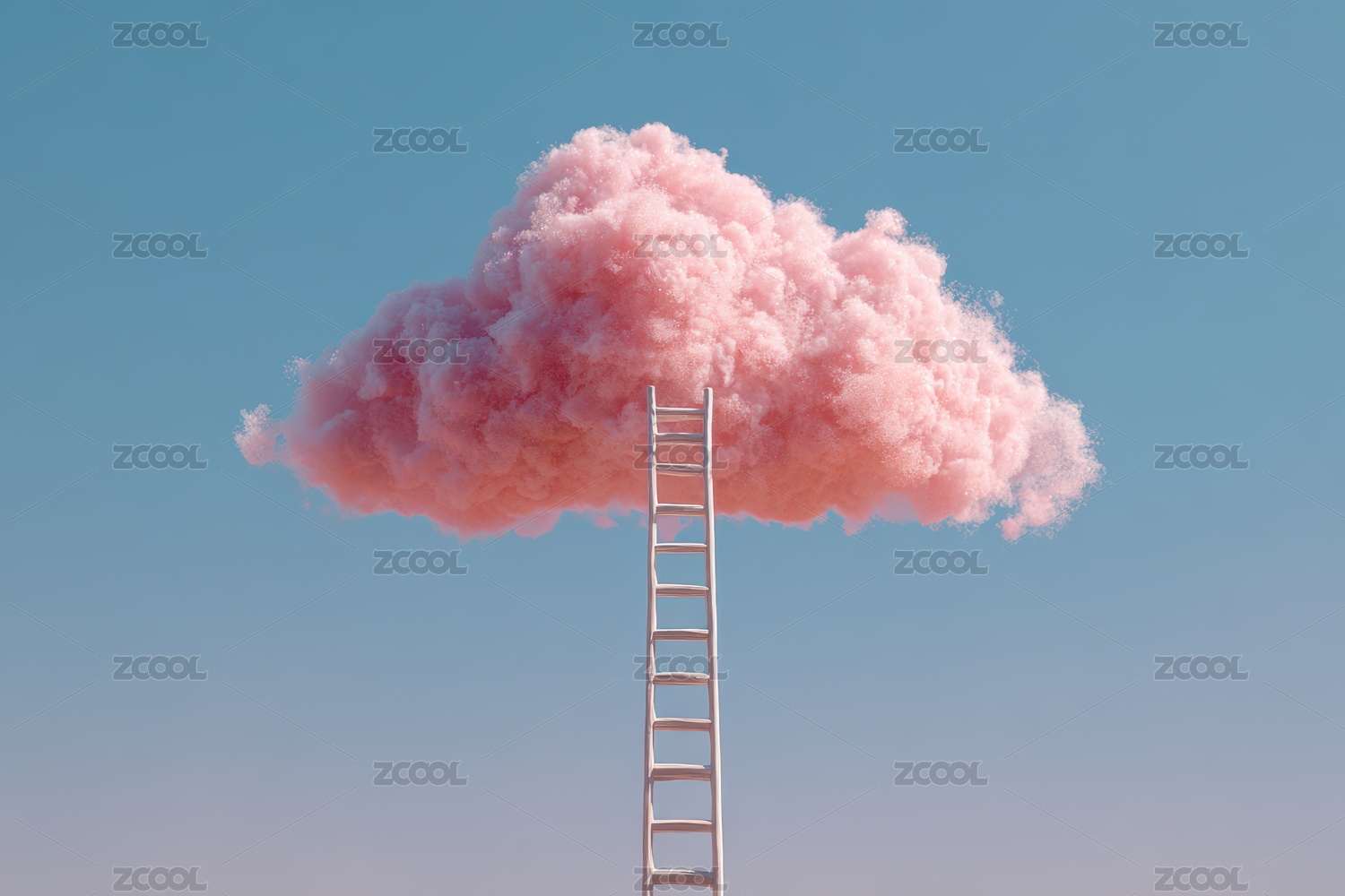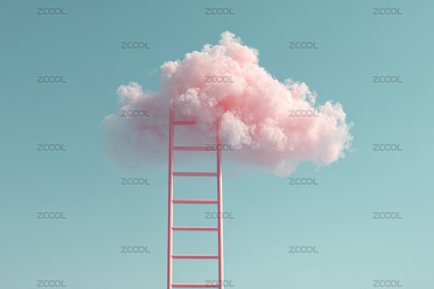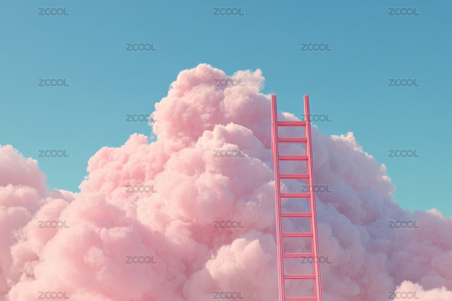 天空,蓝色,粉色,云朵,梦幻,场景,阶梯,创意