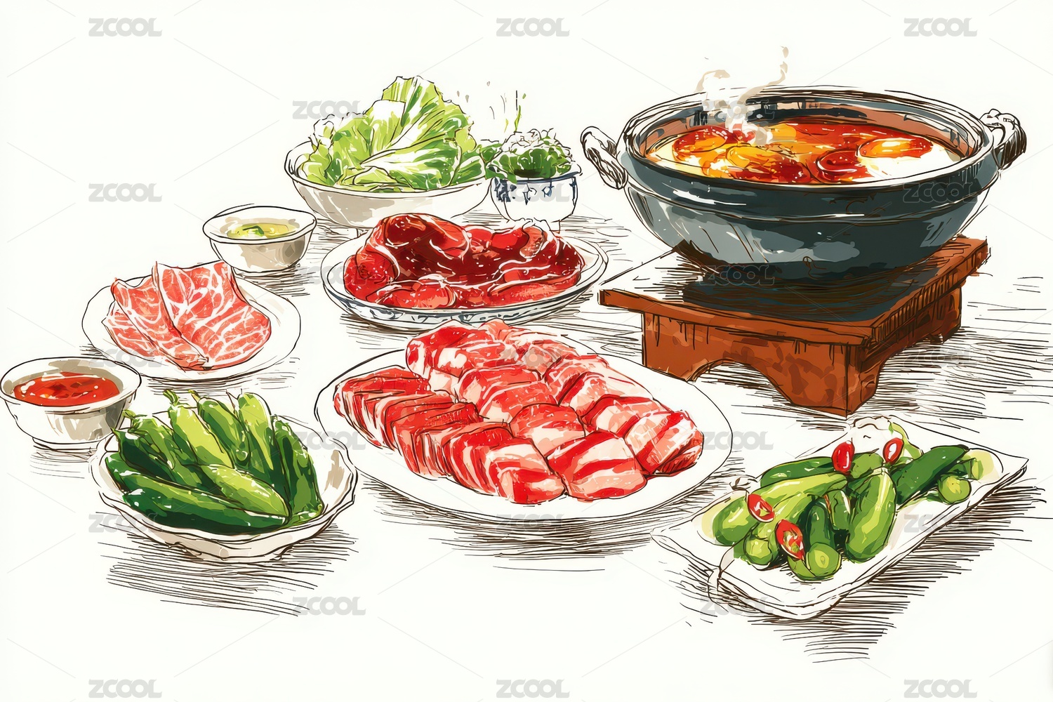 蔬菜,洋葱,番茄,火锅,食材,豆腐,牛肉,黄瓜