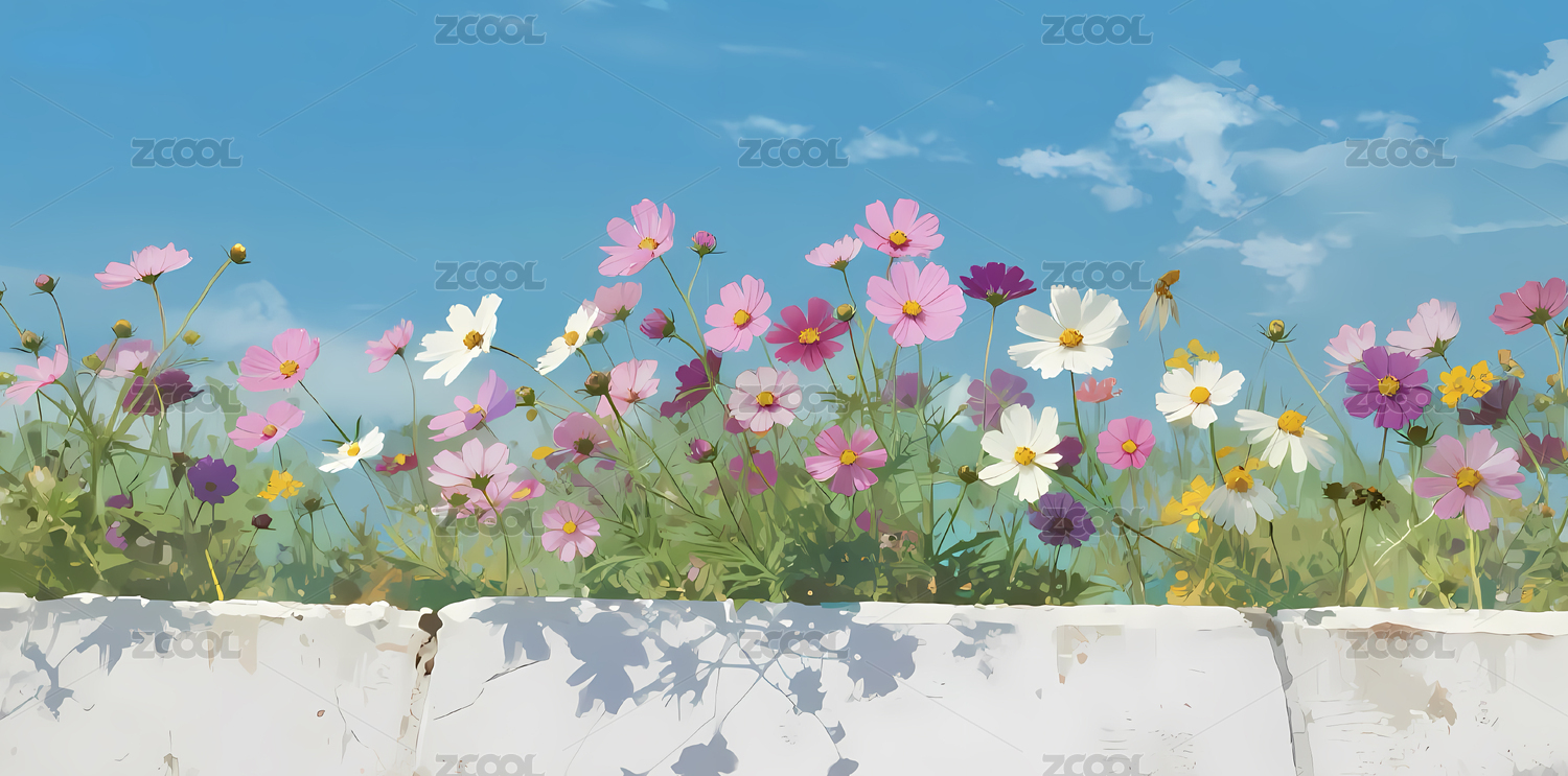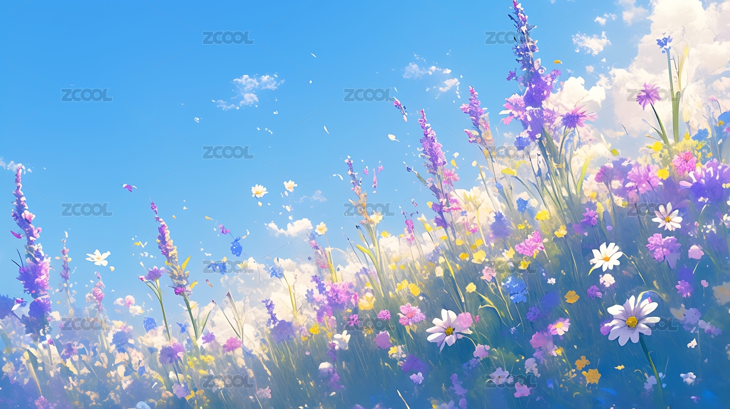 自然,色彩,艺术,插画,生动,环境,花朵,植物,清新,花海