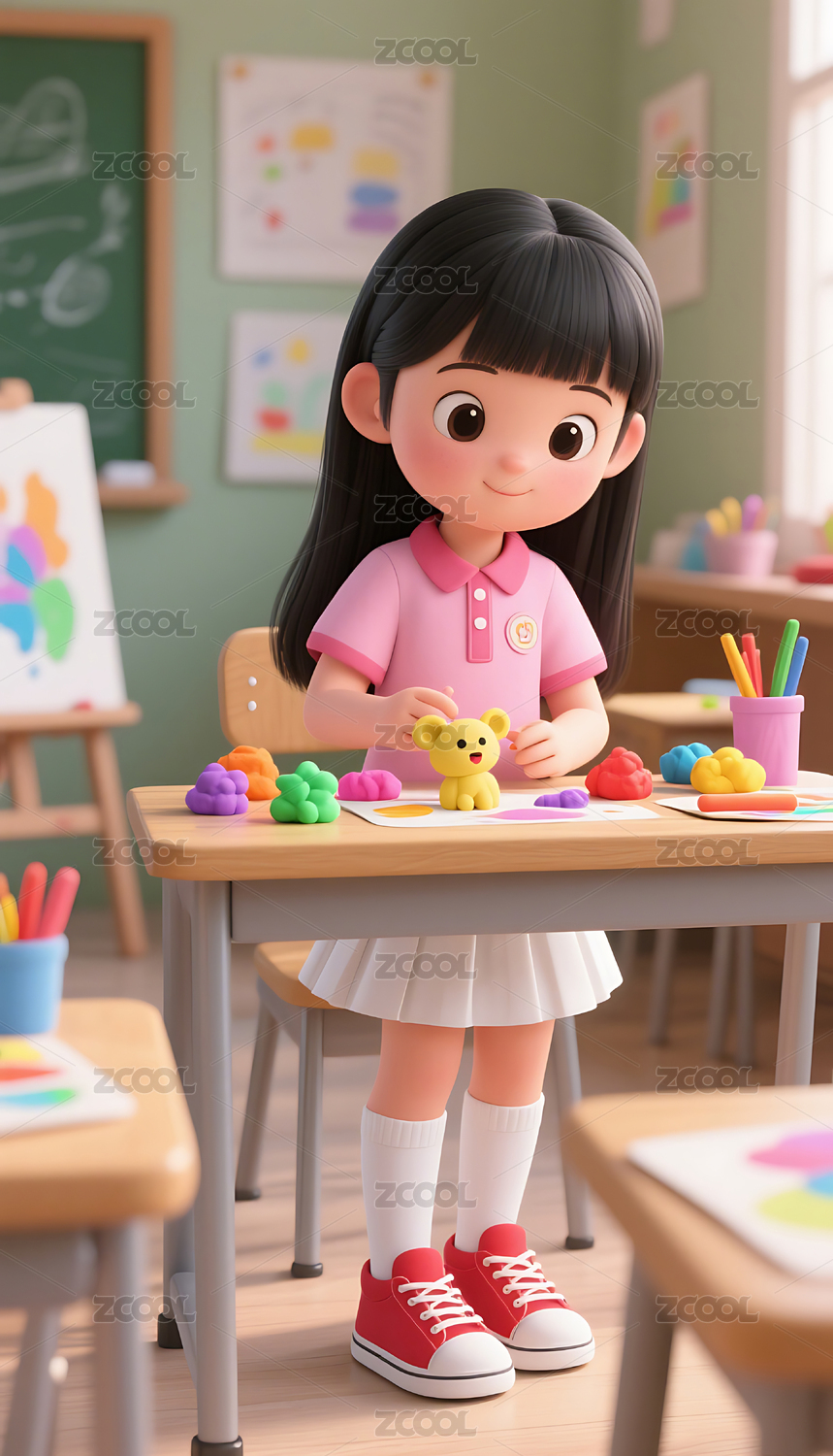 3D,模型,学生,漂浮,天空,校园,文具,开学季,背景,壁纸