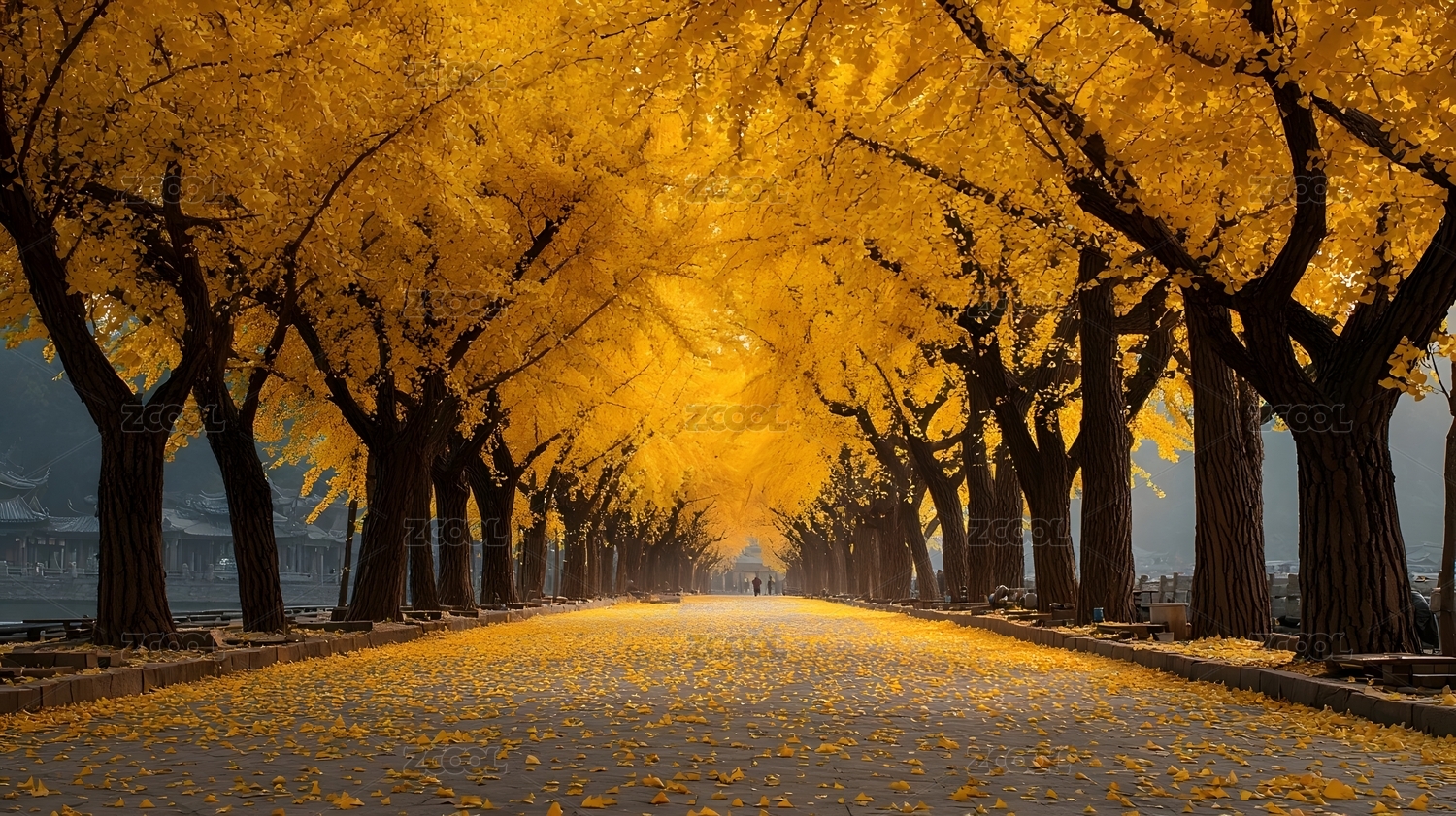 叶子,自然,枝干,阳光,黄色,拱形,风景,树木,景色,秋天