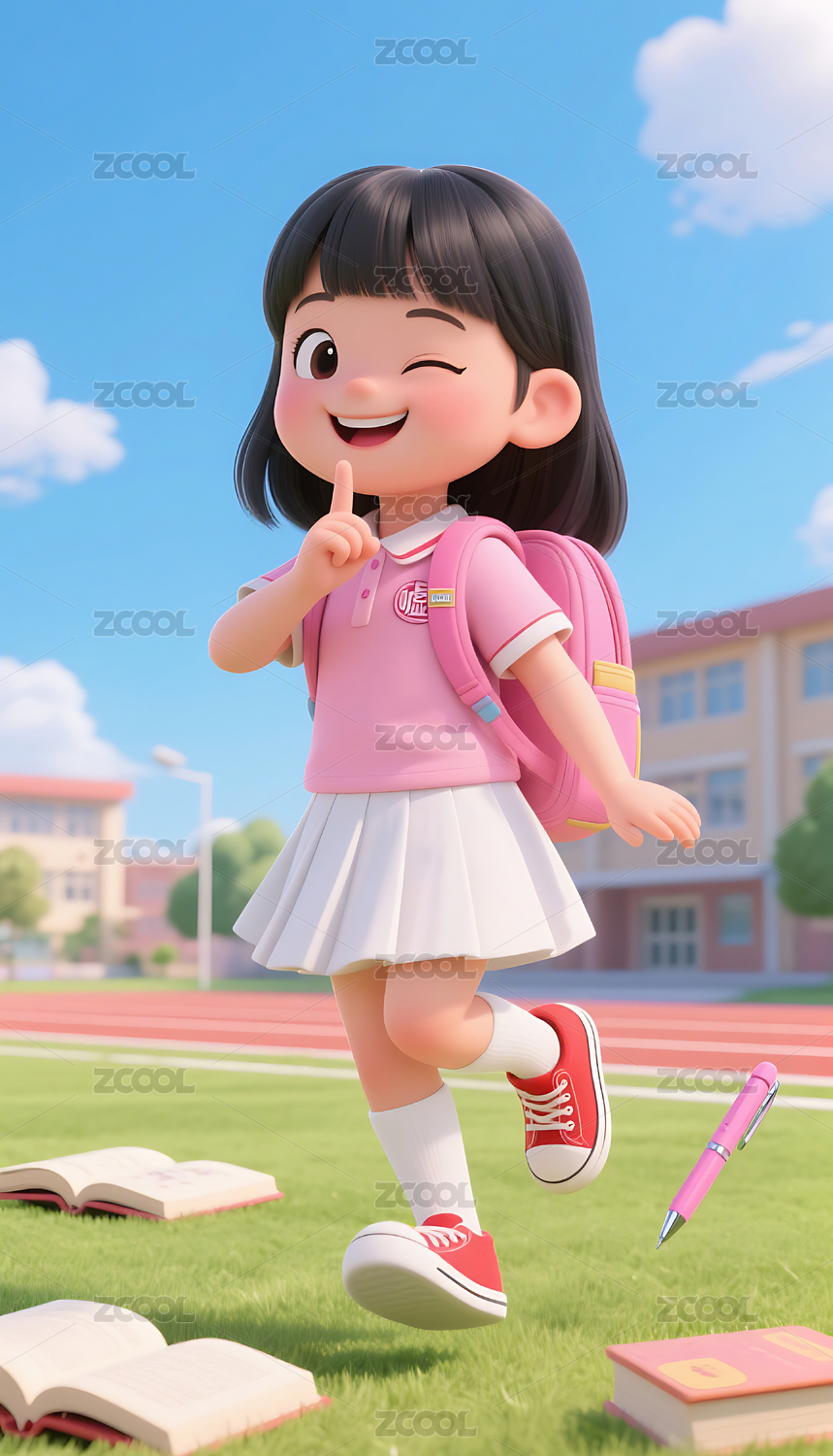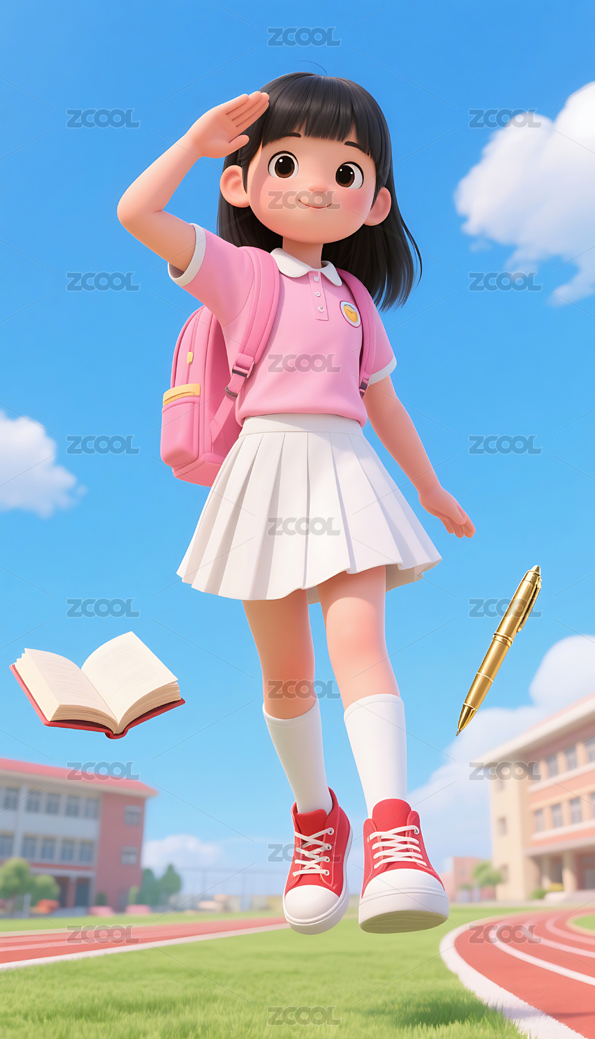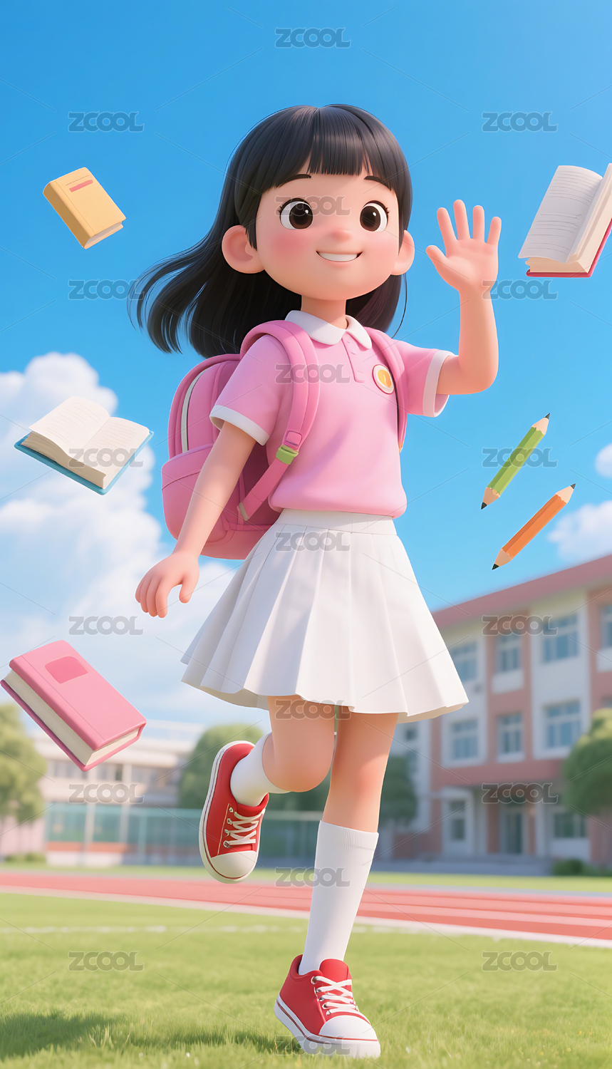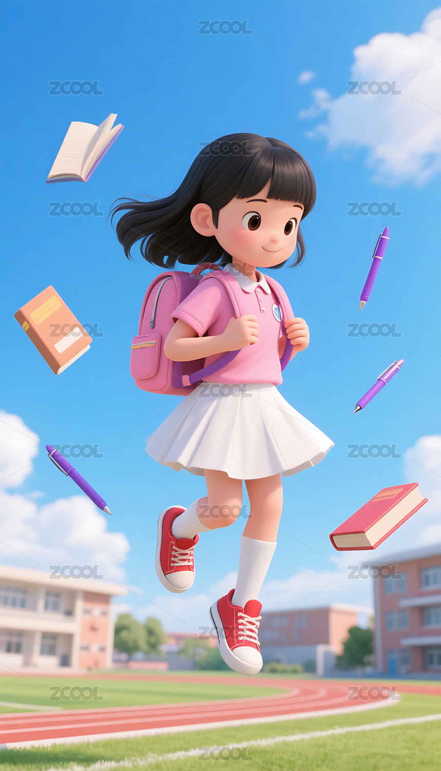 3D,模型,学生,漂浮,天空,校园,文具,开学季,背景,壁纸