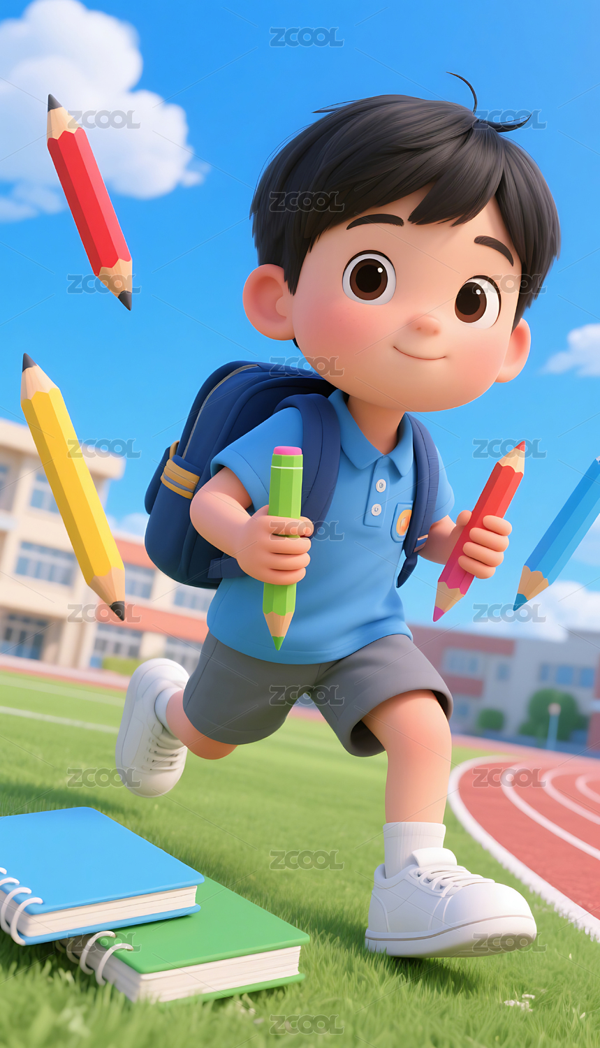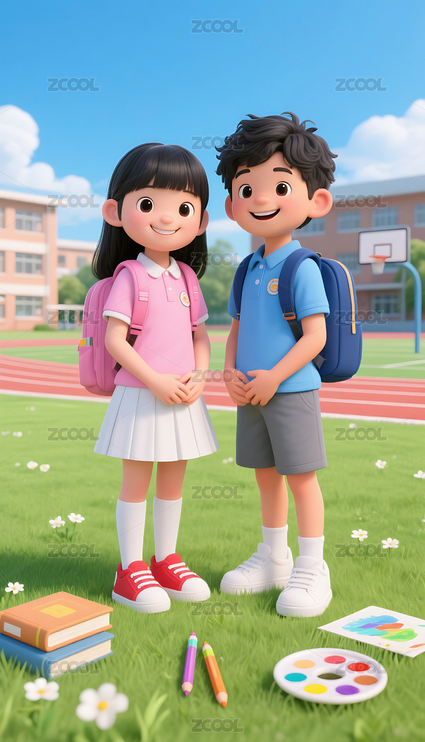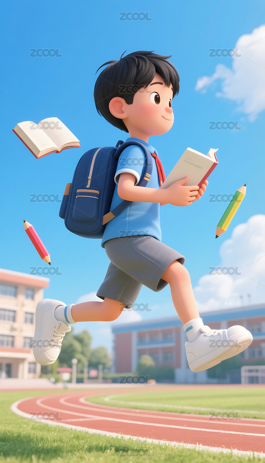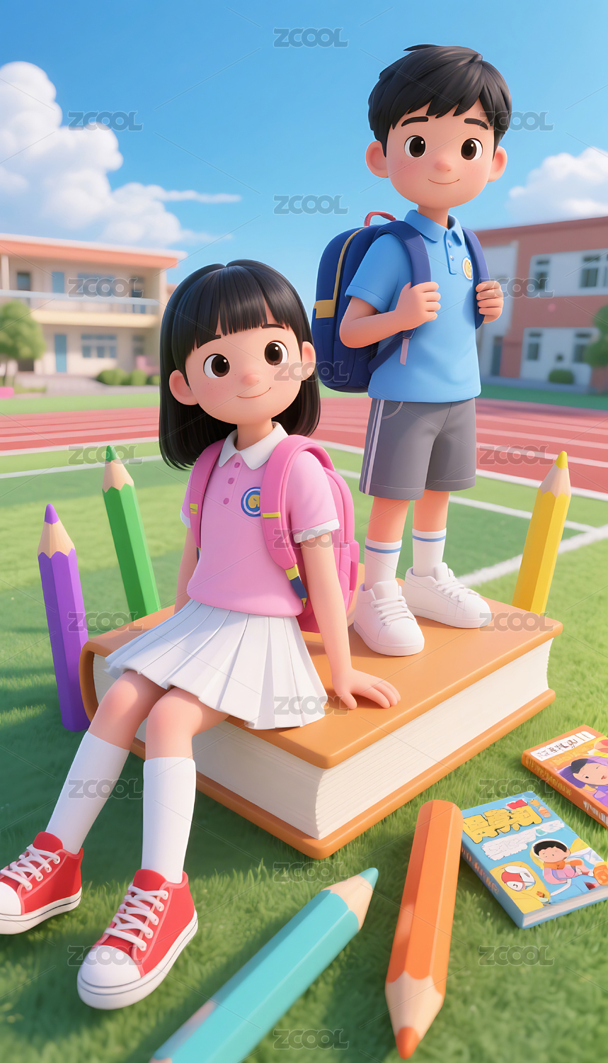 3D,学生,校园,学校,插画,开学季,模型,玩具,操场,草地