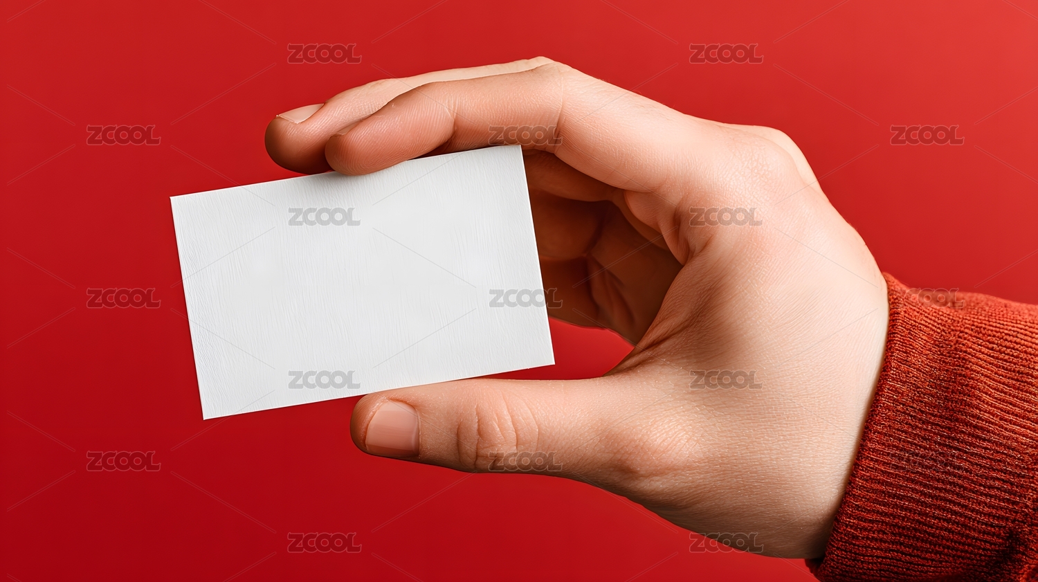 手持白卡片红背景 递送名片